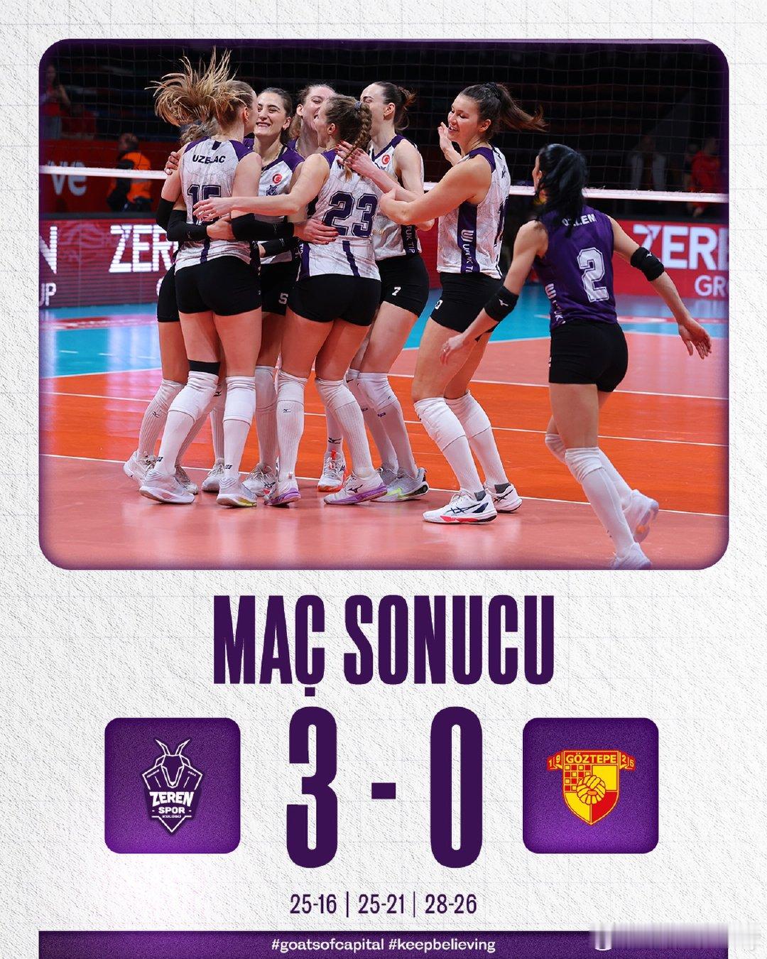 土超女排第20轮,瓦基弗银行、泽仁体育和费内巴切均3-0完胜对手。伊萨奇巴希和阿拉斯卡戈的比赛还在进行中,第一局伊萨奇巴希23-25先丢一局。