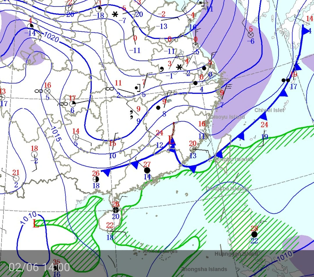 天气多变,真情不变。 今天(2月6日,周五),广东受暖湿空气和冷空气锋前增温影响,白天狂飙3~5度,最高温达到30度🔥🔥,小编在深圳的大街上已经看到穿短袖、短裙的宝宝了哈😃。还没怎么经历冬天,直接要奔着入夏的节奏。不过,降温正在路上,一夜入冬再次上演。 一、整体天气预估 广东未来15天,整体呈现“先冷后暖,多云⛅多雾,降雨稀少”的天气格局,适合广东的伙伴们过春节。 春节前,会有一股较强冷空气影响广东,主要集中在2月7日(周六)~9日(周一),其中2月8日(周日)天气尤其寒冷。 春节期间,冷空气很少~很弱,没有极端寒潮天气,整体上下波动在2~5度区间,天气温暖为主,期间最高温可剑指28~29度🔥,天公作美,适合过节和出行🌞 二、详细预估如下: 第一阶段: 2月7日(周六)~8日(周日): 过年前的最后一股中等冷空气将在今晚(2月6日,周五晚)进入广东粤北,7日(周六)早上/上午逐步渗透广东沿海地区,转东北风4~5级,降温持续进行中。⚠️🥶沿海地区周六~周日累计有7~8度降温,局部降温10度。⚠️受其影响,广东周六的天气不太稳定,多云间阴天,阳光不稳定,会有局部性毛毛雨~小雨🌧️,天气转寒冷(先阴冷,后干冷)。 本周日开始,天气渐转多云,阳光逐步增加,气温继续下降,迎来最低温,沿海地区最低温在9~10度徘徊(广州8度,深圳、汕头10度,湛江茂名11度),注意加强保暖措施。 第二阶段: 2月9日(周一)~15日(除夕的前一天): 9日(周一)开始,受暖湿气流影响,气温止跌走稳。周二(10日)~周三(11日)气温有4~6度回升,天气逐步转暖,但天气变化节奏快,云量时多时少,局部将有毛毛雨~分散小雨🌧️,尤其“粤北~粤西北”地区需要注意阴雨天气。 周四(12日)受冷空气补充,略有2-3度小降温,整体影响不大。周五(13日)~除夕,受偏东气流持续影响,广东天气持续温暖,广东沿海地区最低温站上15度,最高温逼近26度,多云为主,阳光占比50%~70%,适合节前大扫除🧹。 第三阶段: 春节期间(除夕~初五): 春节期间天气多云间晴天,广东沿海地区最低温在15度以上,最高温在25~28度或以上,天气温暖。⚠️需要注意的是,除夕~初一这两天,暖湿空气活跃,云量较多,以多云/多云间阴天为主,局部有毛毛雨/分散小雨🌧️(阴雨概率55%,粤北~粤西北偏多),整体影响不会很大。⚠️初二开始到初五,转多云到晴天🌞,天气持续晴好🌞。