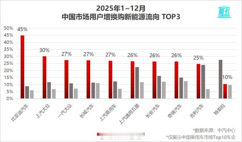 2025 比亚迪以30.55% 复购率登顶行业榜首,全年超 460 万辆销量蝉联国内车企 / 品牌双冠,连续 4 年登顶全球新能源销量冠军,千万级体量下仍保持高复购,这么高的复购率印证品牌力。
