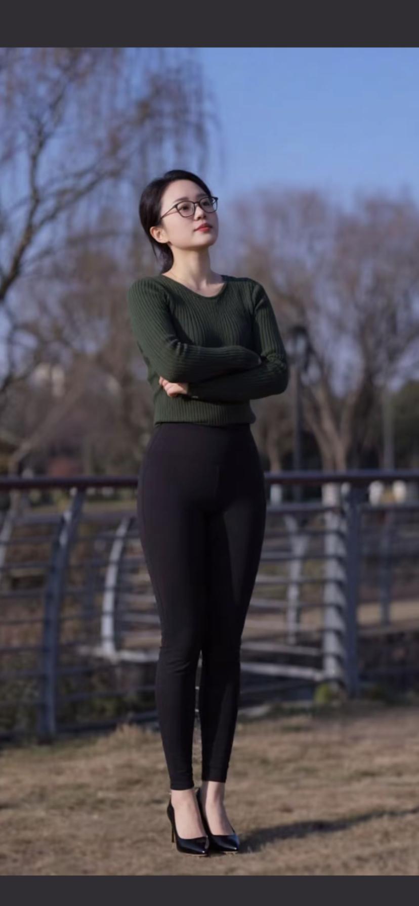 🌲 绿毛衣+黑紧身裤,简约时尚,尽显优雅气质!