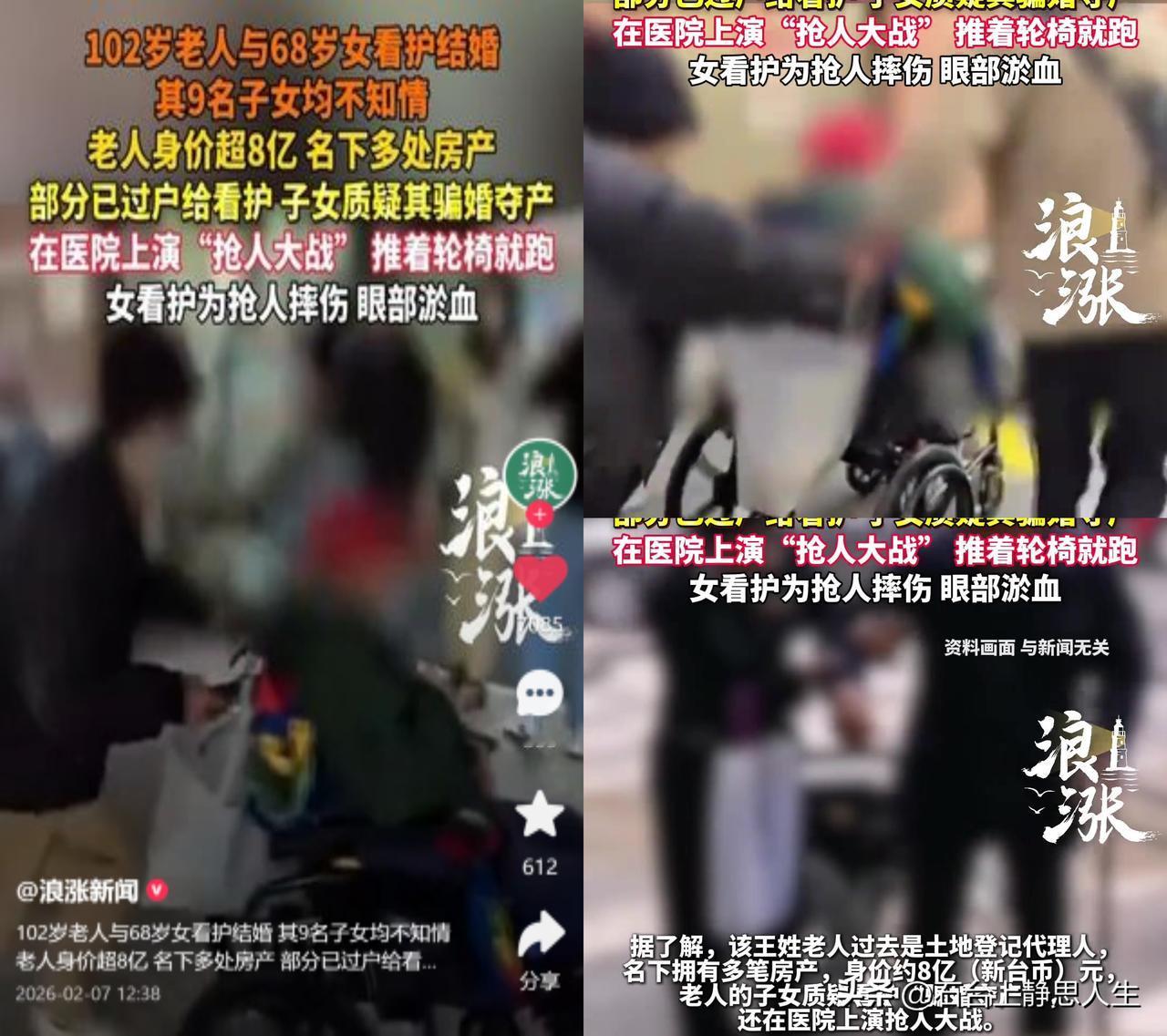 百岁富豪秘娶女看护,子女医院抢人 身家8亿的102岁老人,悄悄和68岁女看护领证,还转了部分房产,9个子女全被蒙在鼓里,直接在医院上演抢人大战,看护都摔得眼部淤血。 这事看着荒唐,但这背后暴露了两个现实的bug。 一个是婚姻登记的规则漏洞:对高龄老人的认知能力,只做表面审查,只要能说清基本问题、表达愿意,就能领证,根本没强制精神鉴定要求,可百岁老人的自愿,到底是清醒的选择,还是被引导的结果? 另一个是维权的高门槛:子女要推翻这段婚姻,得拿出司法鉴定,证明老人领证时完全丧失行为能力,光说老人糊涂没用,连医院诊断都不算数,还得精准溯及到领证那天的状态。 有人骂看护吃绝户,也有人直指子女痛处:早干嘛去了?可本质上,这是钱、亲情和规则的糊涂仗。规则保了形式,却没顾上最该被兜底的人,最后谁都讨不到好。