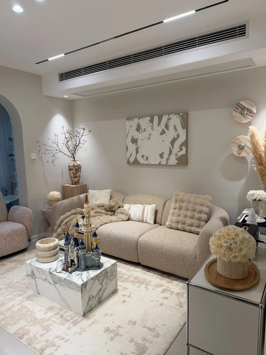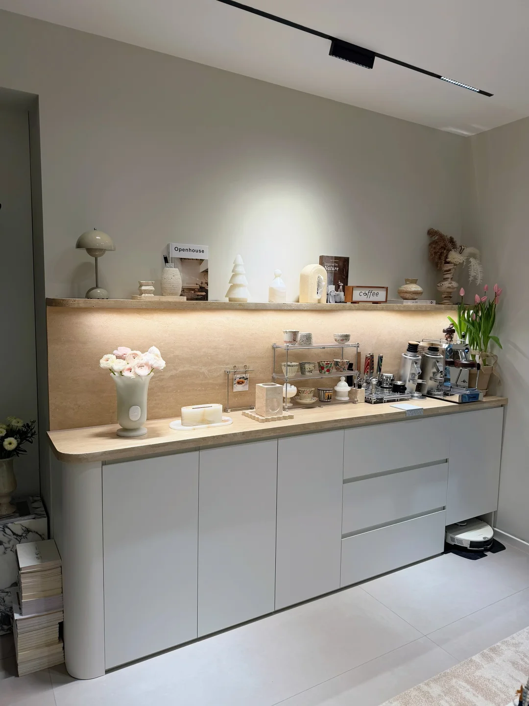 家居作者扶持计划 餐边柜 洞石餐边柜 家居薯 家的养成计划 餐边柜设计 奶油风装修 小户型客厅布置 整墙餐边柜 家里的小角落
