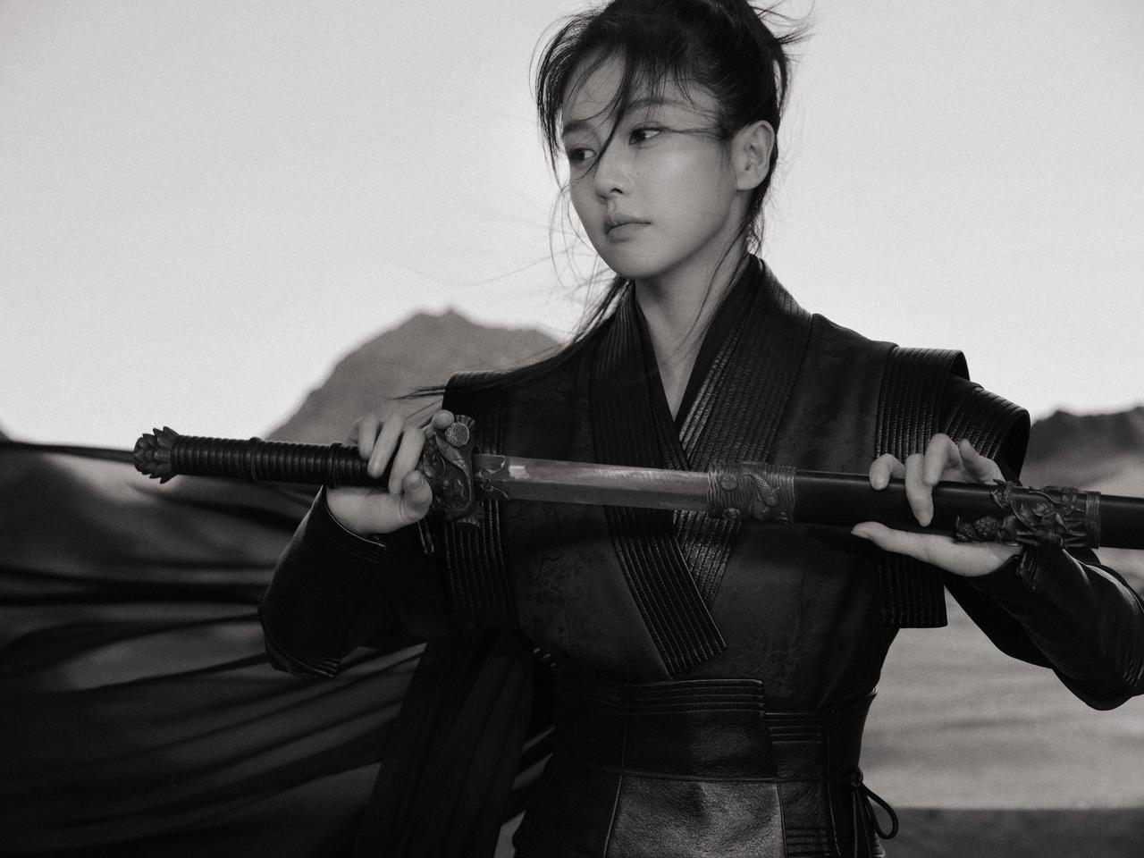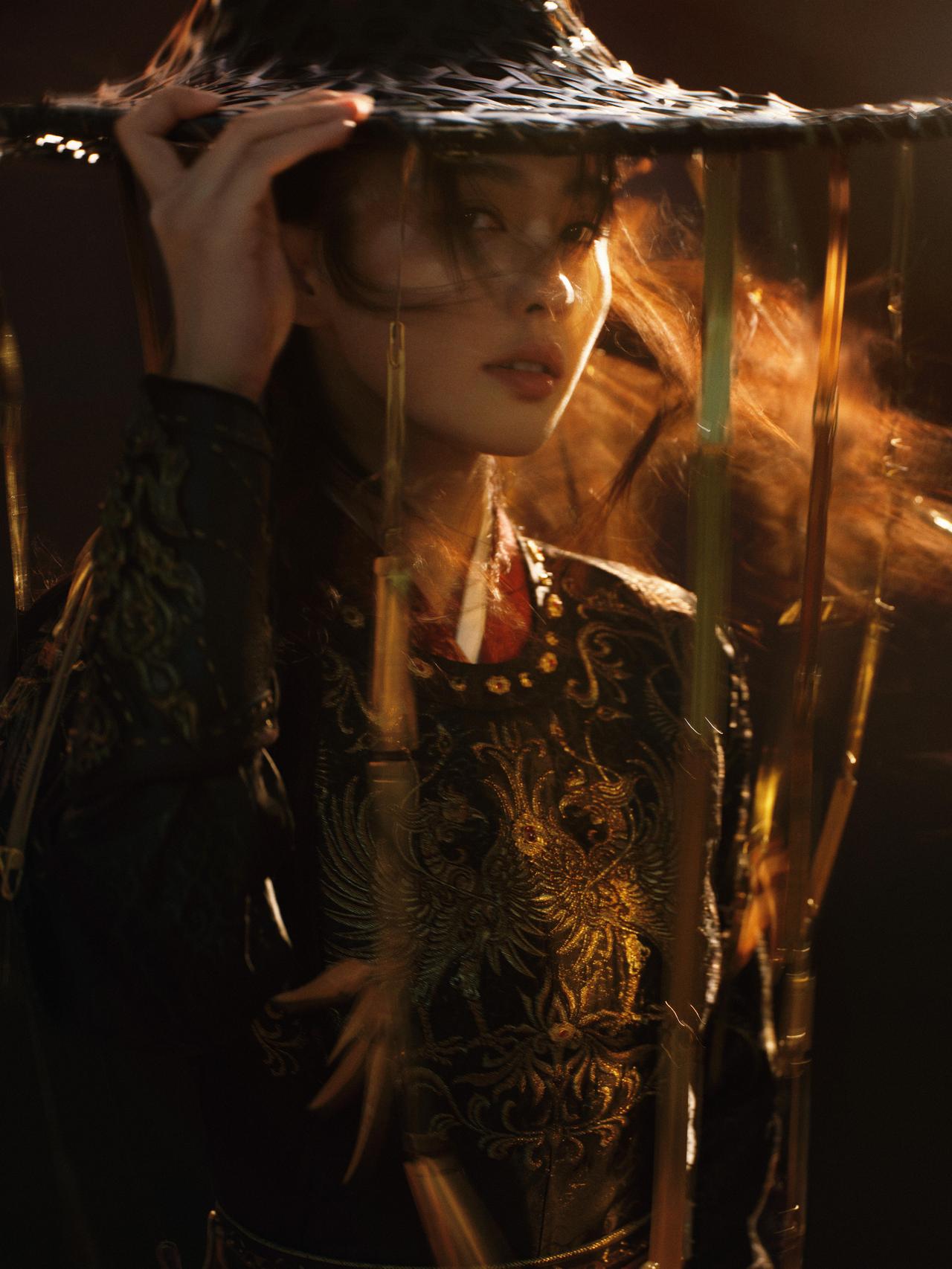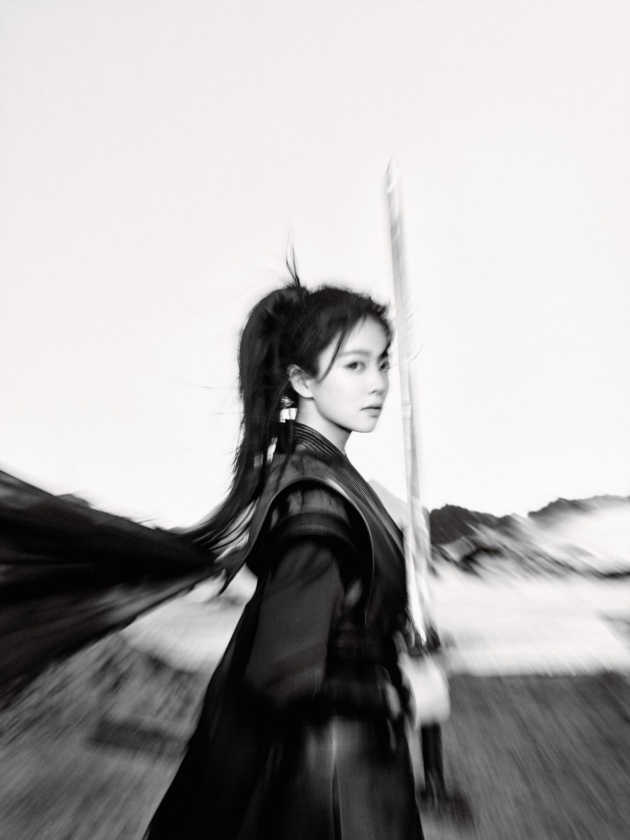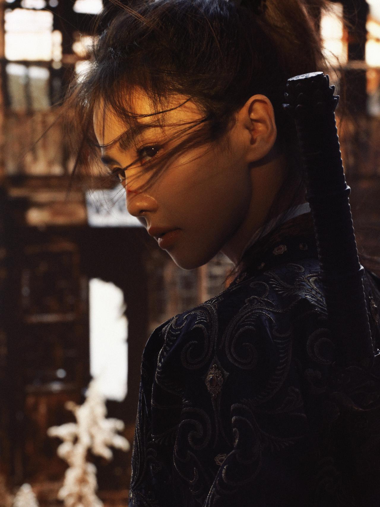 侧身的武侠作品, 将人物置于残垣断壁间,用环境烘托出侠客的孤独感,是我们每个摄影师都想要拿到的照片。 低角度侧逆光勾勒出人物轮廓,发丝在风中肆意飞舞,强化了动态感与生命力。服装上的暗纹在斑驳光影下若隐若现,低调中尽显工艺细节。人物低垂的眼眸与紧绷的下颌线,传递出警惕与沉思的复杂情绪,避免了传统侠女造型的脸谱化。 背景的废墟元素不仅交代了故事发生的场景,更通过残破意象与人物坚韧气质的对比,深化了“乱世侠客”的主题。色彩上的统一处理让画面和谐而富有层次,暖棕色调贯穿始终,营造出复古电影般的沉浸感。