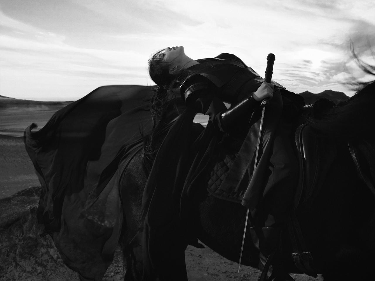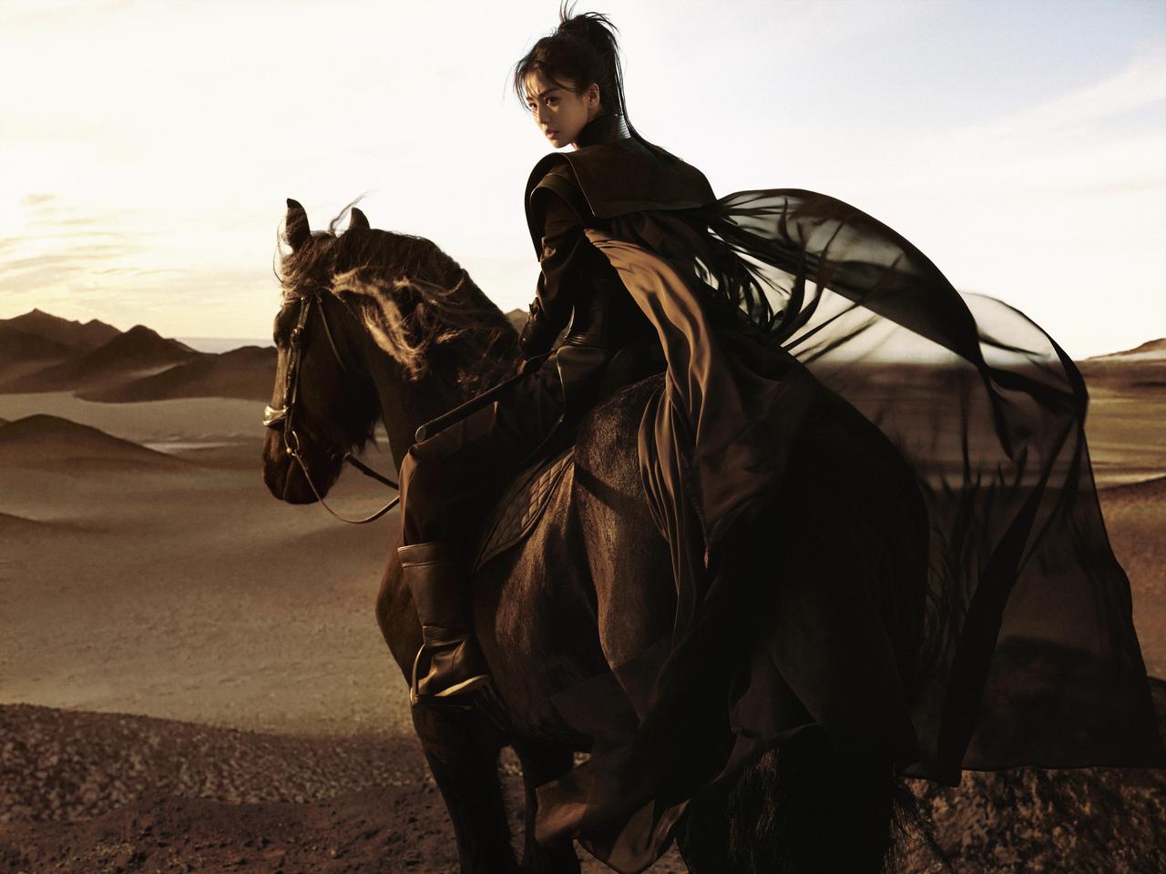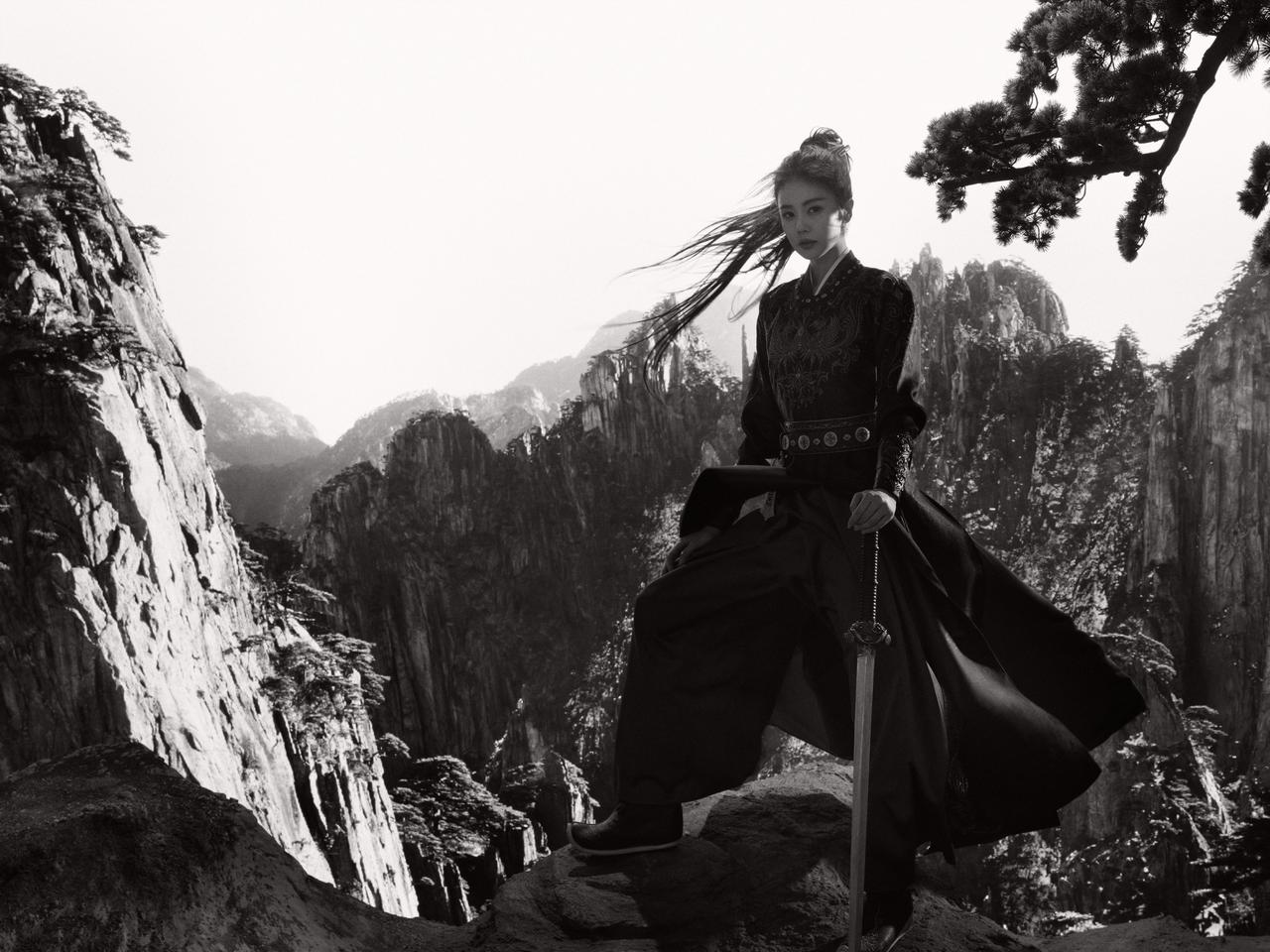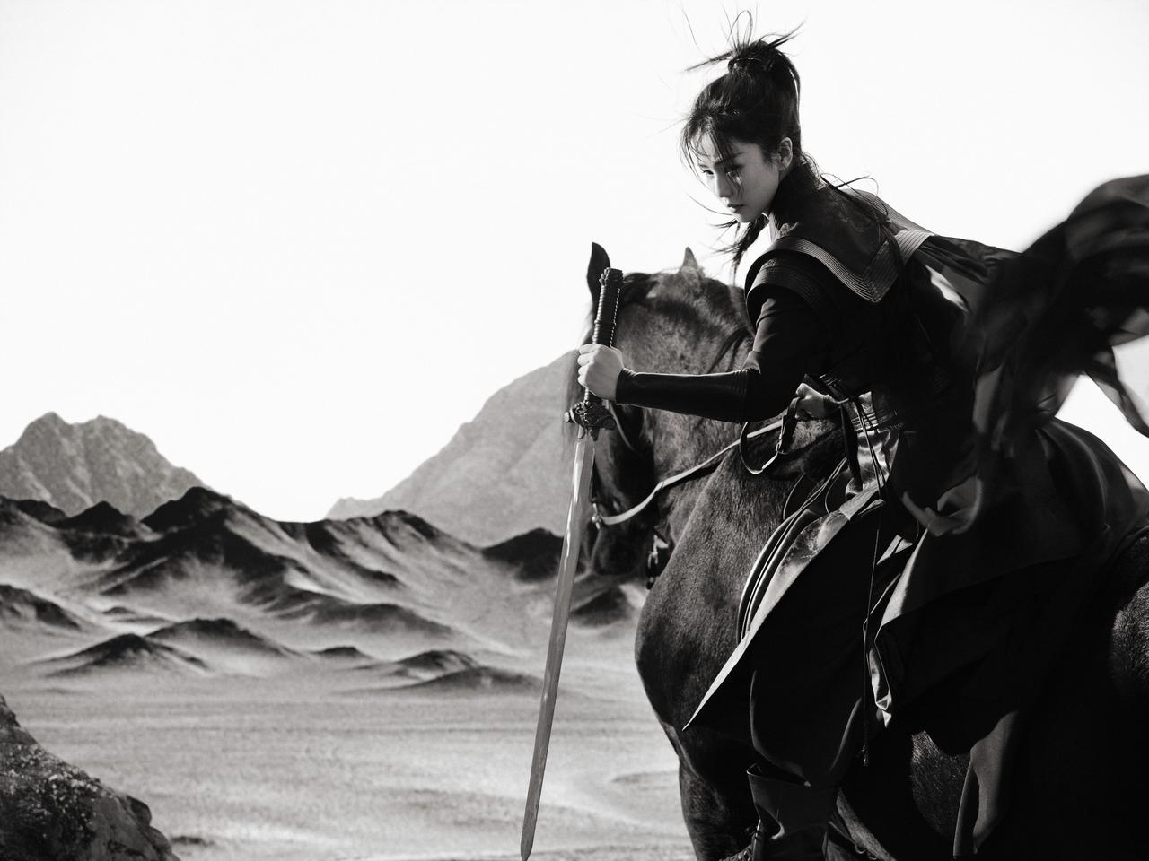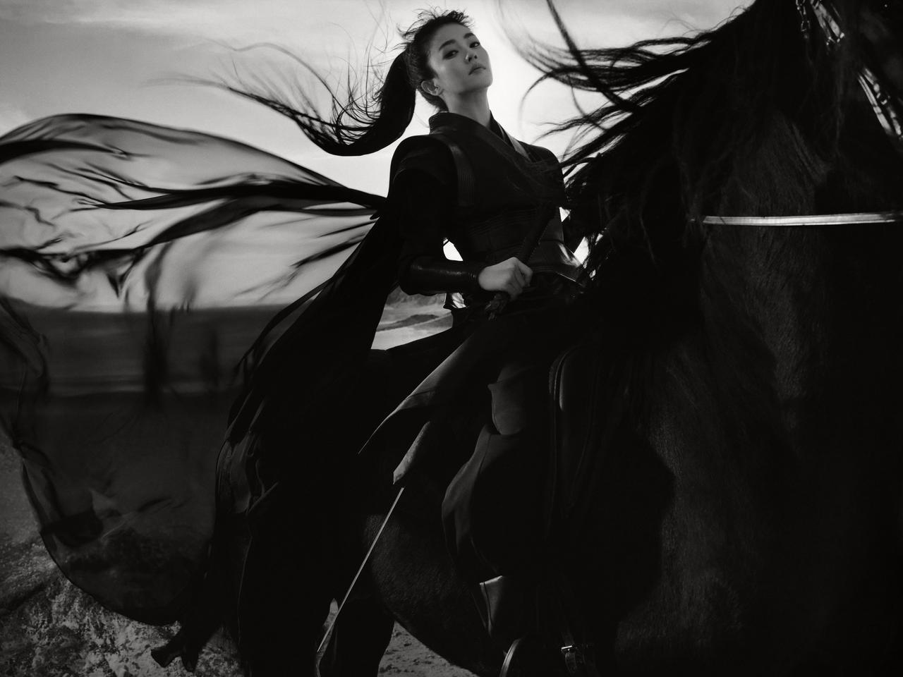 侧身的武侠作品, 将人物置于残垣断壁间,用环境烘托出侠客的孤独感,是我们每个摄影师都想要拿到的照片。 低角度侧逆光勾勒出人物轮廓,发丝在风中肆意飞舞,强化了动态感与生命力。服装上的暗纹在斑驳光影下若隐若现,低调中尽显工艺细节。人物低垂的眼眸与紧绷的下颌线,传递出警惕与沉思的复杂情绪,避免了传统侠女造型的脸谱化。 背景的废墟元素不仅交代了故事发生的场景,更通过残破意象与人物坚韧气质的对比,深化了“乱世侠客”的主题。色彩上的统一处理让画面和谐而富有层次,暖棕色调贯穿始终,营造出复古电影般的沉浸感。