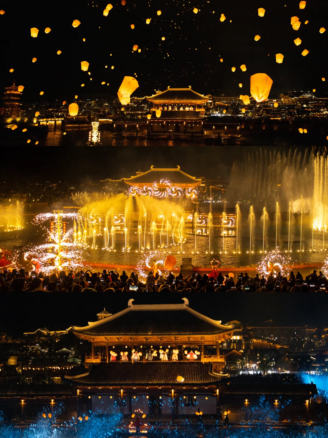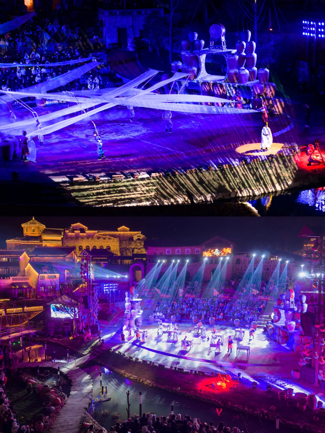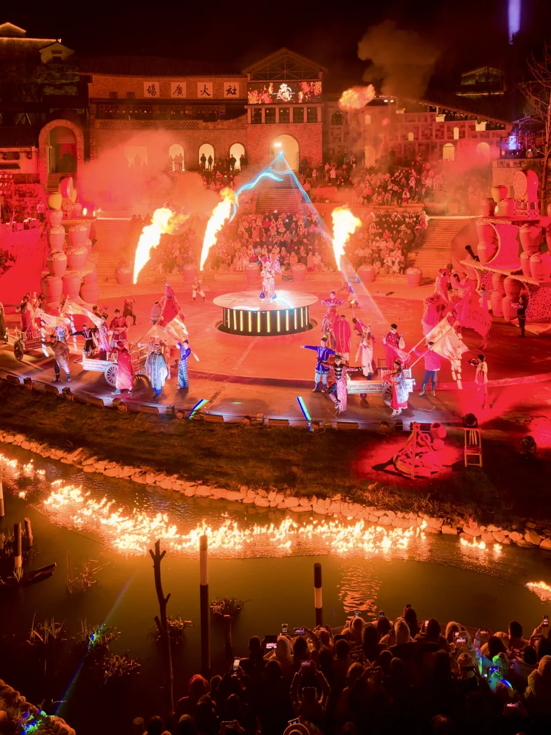 ✔️春节期间的窑火颂和心愿节分别都会有两场,建议看第一场的窑火颂,可以早点去占前排位置,然后去吃晚饭,再看第二场的龙腾水秀烟花&心愿节。这样不会很赶。