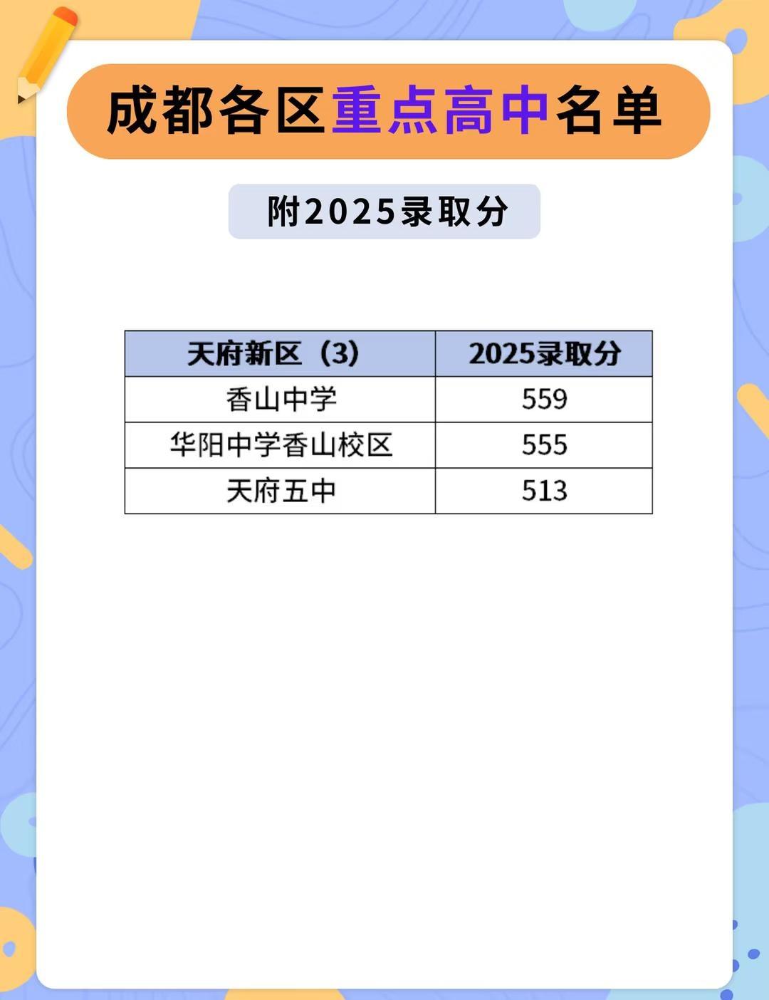 成都各区🏫重点高中名单 金牛区、锦江区实力雄厚,高新区发展迅猛,青羊区后起之秀,成华区也很香。 天府新区还需努力啊[笑哭]好在今年天府四中要开高中部了。 成都教育 成都高中 重点高中 成都重点高中