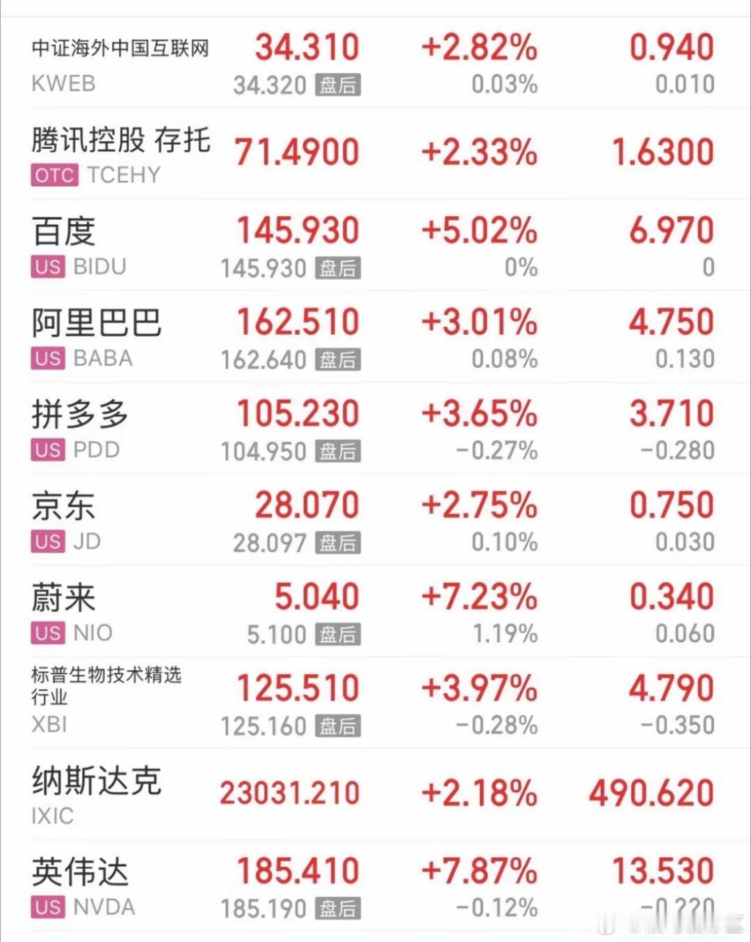 重磅利好消息美股和中概股、黄金暴涨,下周A股和港股大涨方向定了开启春节红包行情:2月7日与38万粉丝分享,昨晚重磅利好消息,中概股暴涨2.83%,美股纳指大涨2%,英伟达暴涨7.87%,CPO大涨13%,黄金暴涨2%,标普生物大涨近4%,半导体大涨5%,那么很明显,下周A股和港股大涨的方向就定了:大科技的CPO、半导体、黄金、恒生科技、港股创新药,下周A股和港股必然大涨,开启春节红包行情,不信点赞关注验证。