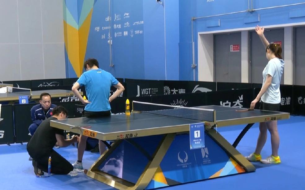 海口亚洲杯比赛,王曼昱今晚女单1/4对阵韩国选手申裕斌,赛前与王晓彤对练过程中突然膝盖出现不适反应。 曼昱赶快叫来孟队医用肌肉贴把膝盖附近都绑紧。 运动员太不容易了,比赛和训练就是对身体的超高消耗。小伤小病都是扛一下,忍一忍。感觉运动员本人都习以为常了。 希望曼昱这次只是肌肉有些反应,远离伤病,健康完赛!