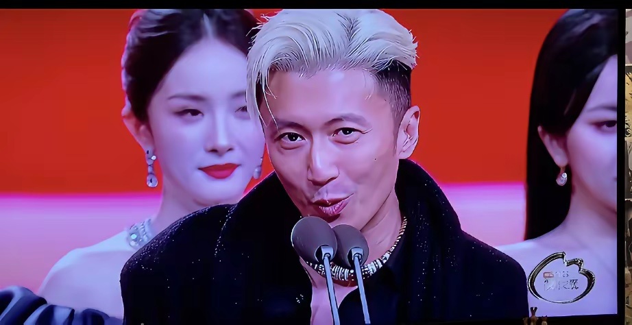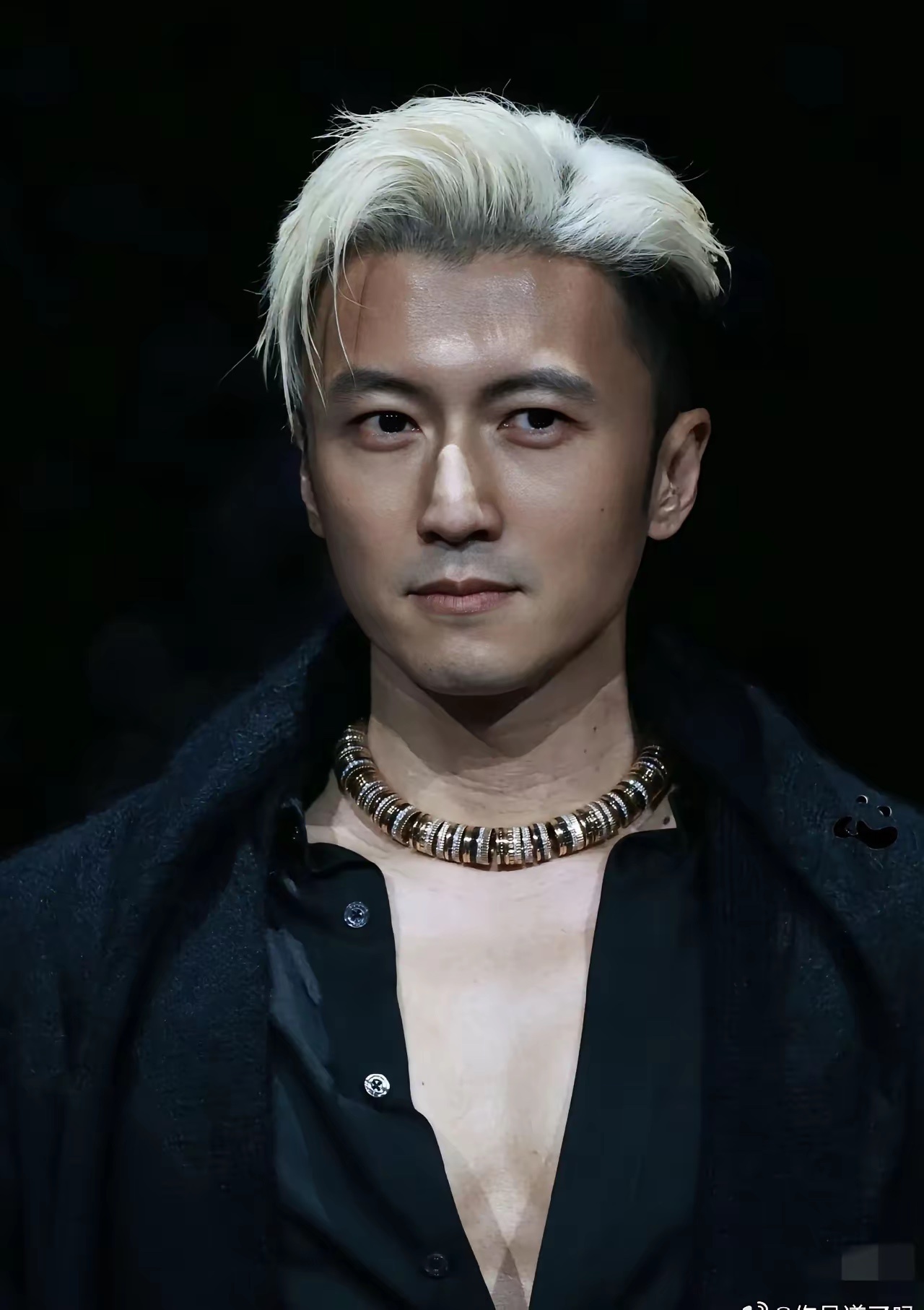 谢霆锋参加微博之夜造型让人大开眼界。项链675万,鞋跟15厘米,胸肌比脸白,手指受伤起皮了!