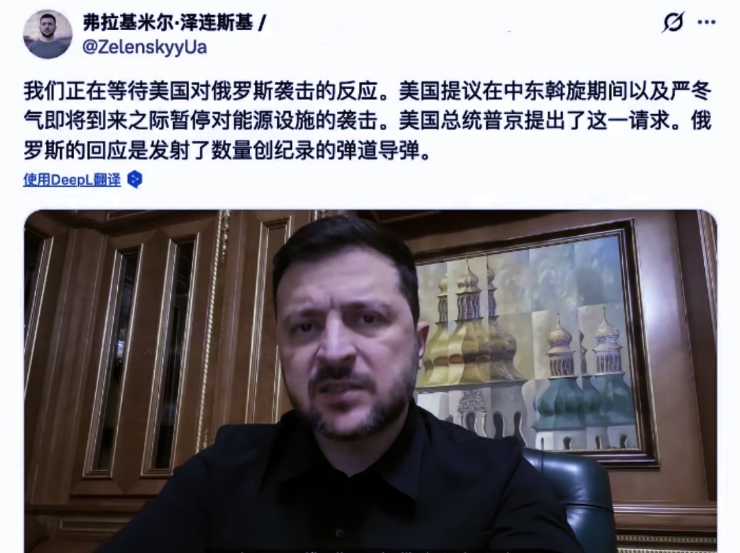据了解,俄军此次行动是在俄罗斯同意美国停止互相攻击能源设施提议四天后进行的,这对于乌克兰来说无法接受,说白了就是认为俄罗斯言而无信,对此泽连斯基发文称俄罗斯发射创纪录的弹道导弹,我们正在等待美国对俄罗斯袭击的反应。