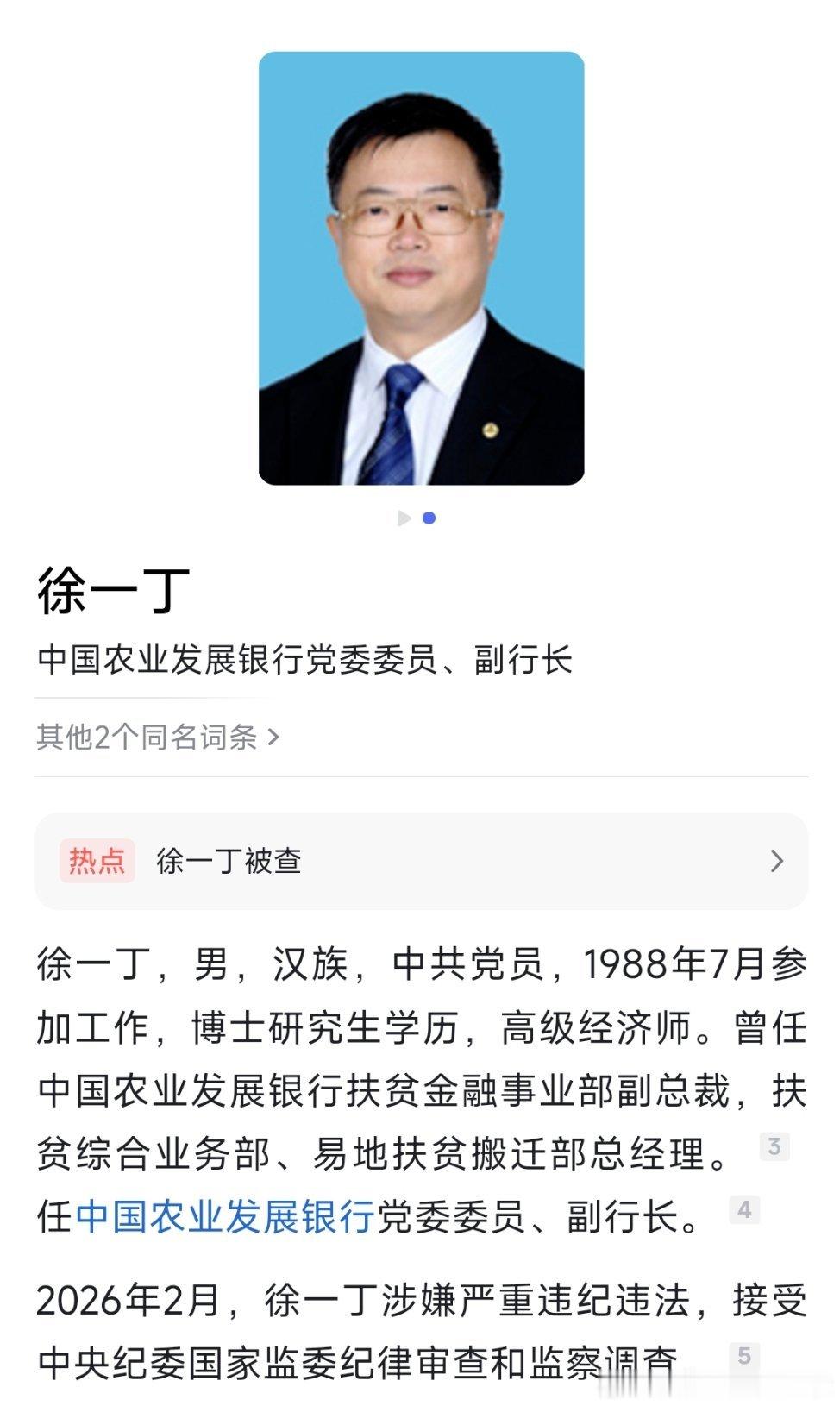 周末打虎:中国农业发展银行党委委员、副行长徐一丁接受中央纪委国家监委纪律审查和监察调查!