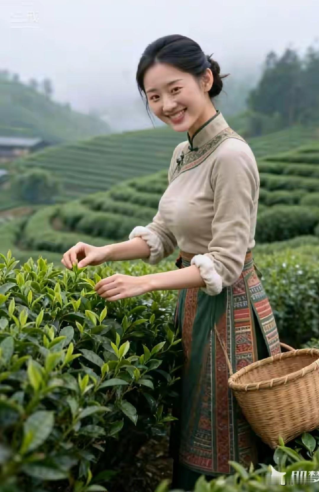 微微一笑百媚生, 采茶姑娘显风情。 人生如茶沉浮间, 红尘若梦亦从容。