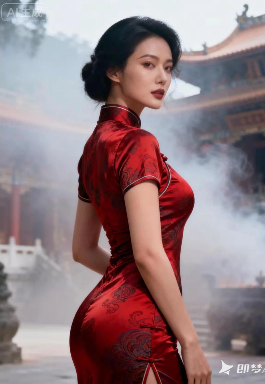 中国旗袍,国风古韵。 历史悠久,文化传承。 红袍曳地,步履生风, 古刹青烟,东方风骨。 绸缎精致,玲珑身段。 妙曼身姿,万种风情。