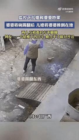 婆媳之间,大打出手 1月27日,广西的一户人家,儿媳妇和婆婆打起来了,儿媳妇把婆婆推倒在地。 视频中的婆婆,把儿媳妇的碗踢翻了,儿媳妇看到后,把婆婆推倒在地,婆婆站起来后,拿了一根木棒,准备去打儿媳妇。 视频看到这里,感到这婆媳两人,都是没有素质,婆婆不像婆婆,儿媳不像儿媳,两个人谁也不让谁,你给我初一,我还你十五。 作为婆婆,不该踢儿媳妇的碗,儿媳妇有什么错,可以跟儿子说,儿媳妇也不是婆婆打的人。 儿媳妇也没素质,婆婆在不对,也是老人,不能把老人推倒,如果老人摔伤,你怎么向老公交待? 像这样的婆媳关系,水火不容,还不如分开过,不在一起生活会好些,远香近臭。 先有好婆婆,再有好儿媳,婆婆如果对儿媳妇好,儿媳妇也会尊重婆婆,人心都是肉长的,人心换人心。 朋友们,你们觉得呢? 声明(视频来源于网络,侵权联系删除)