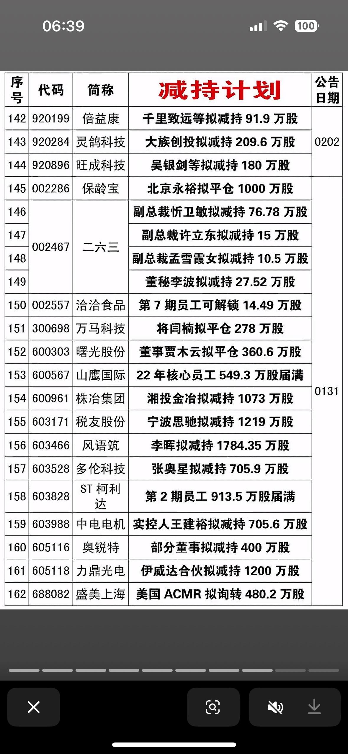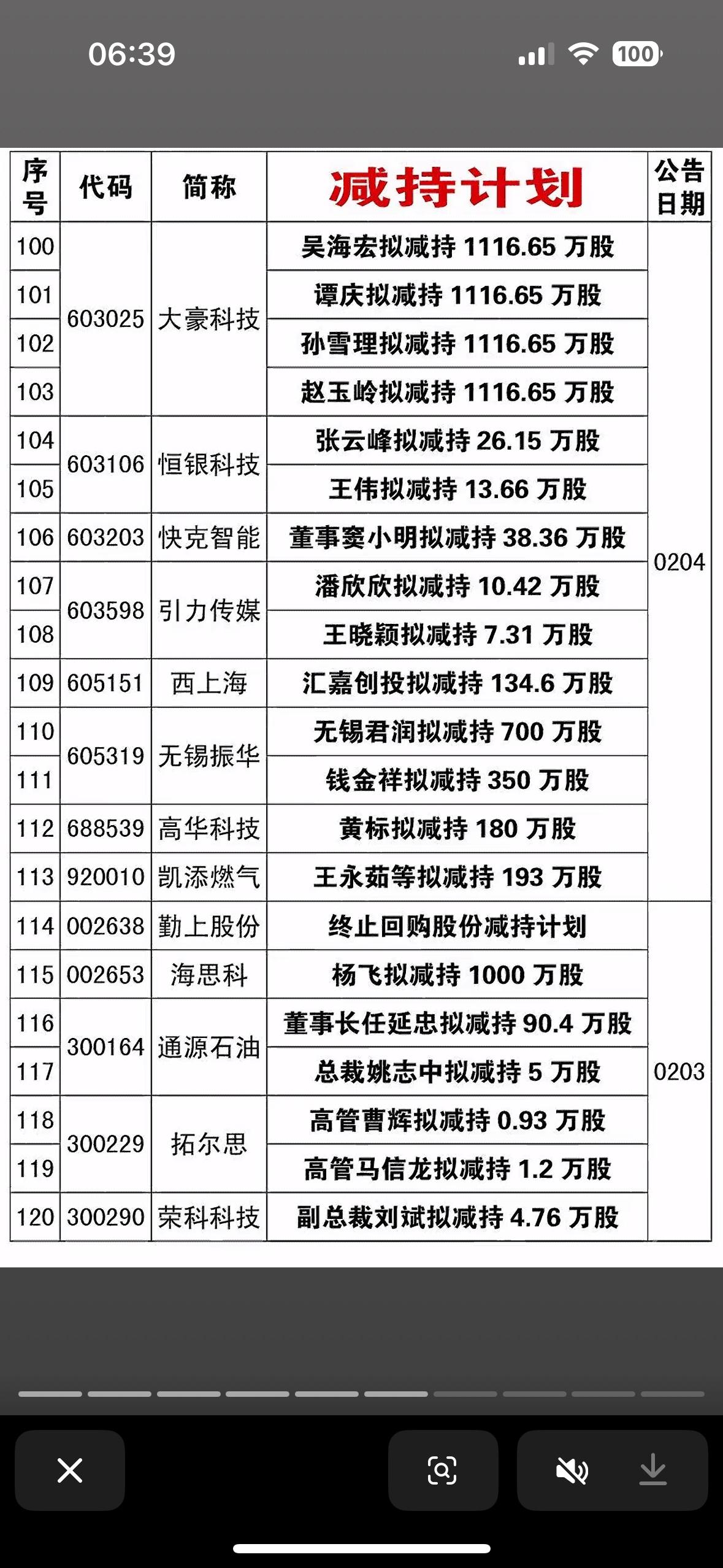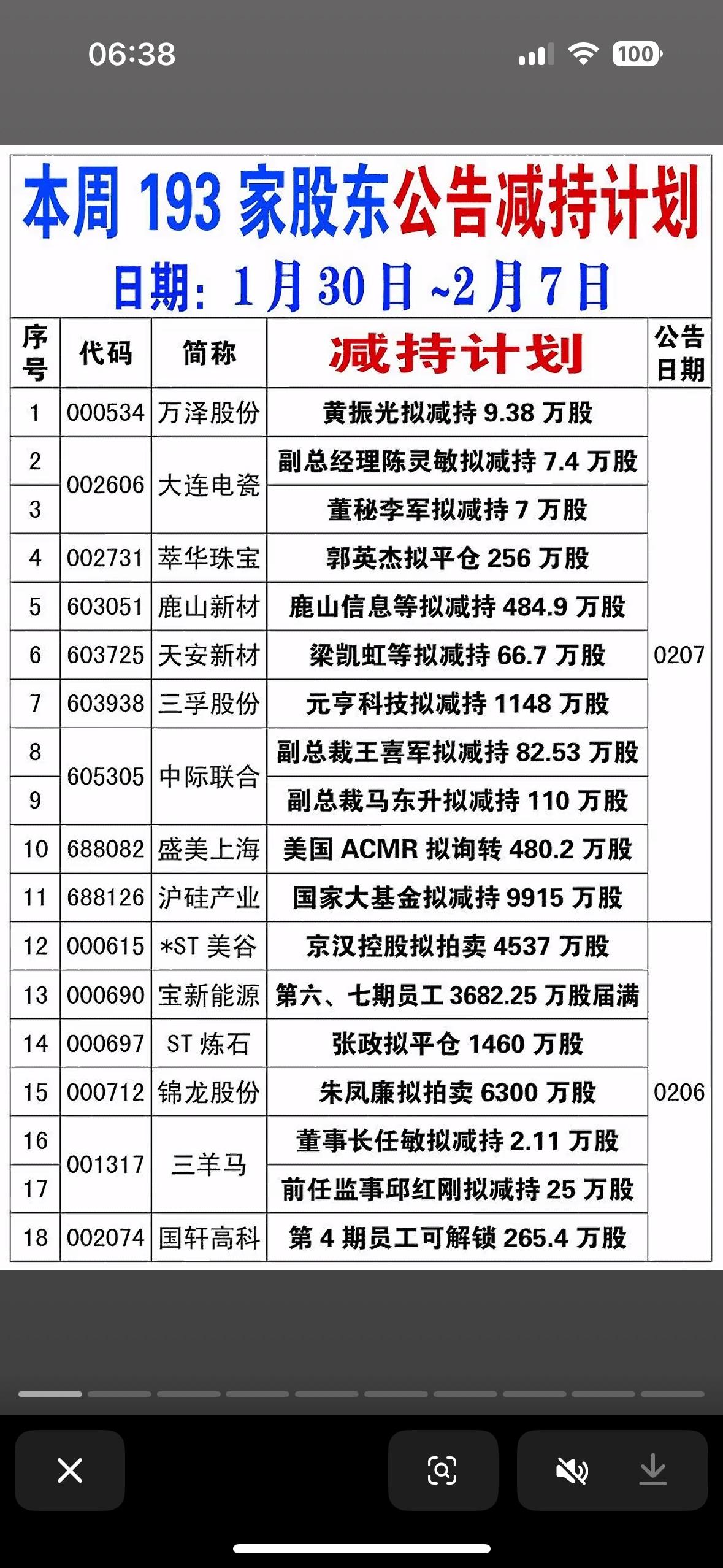 本周股票减持计划表,公司大动作。 多家上市公司股东密集减持,高管套现频现,市场压力信号明显。