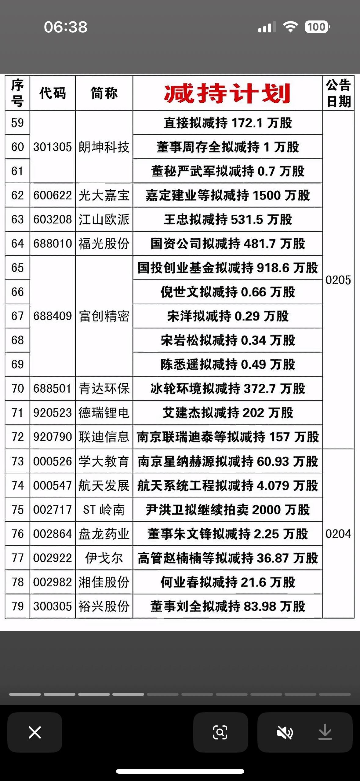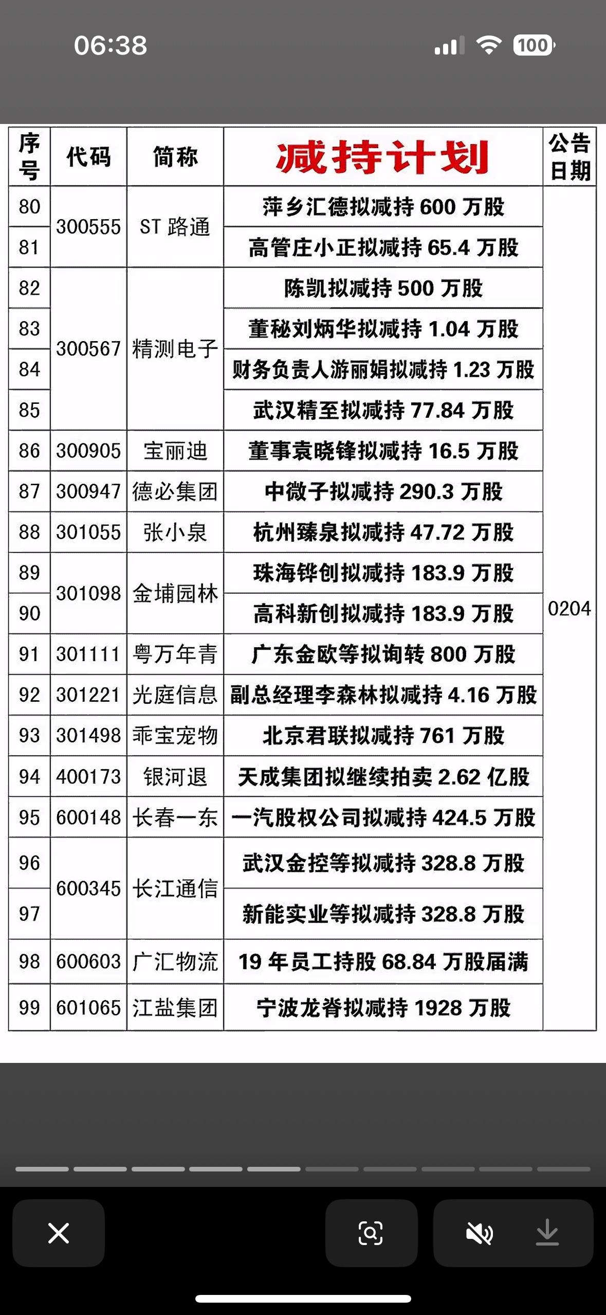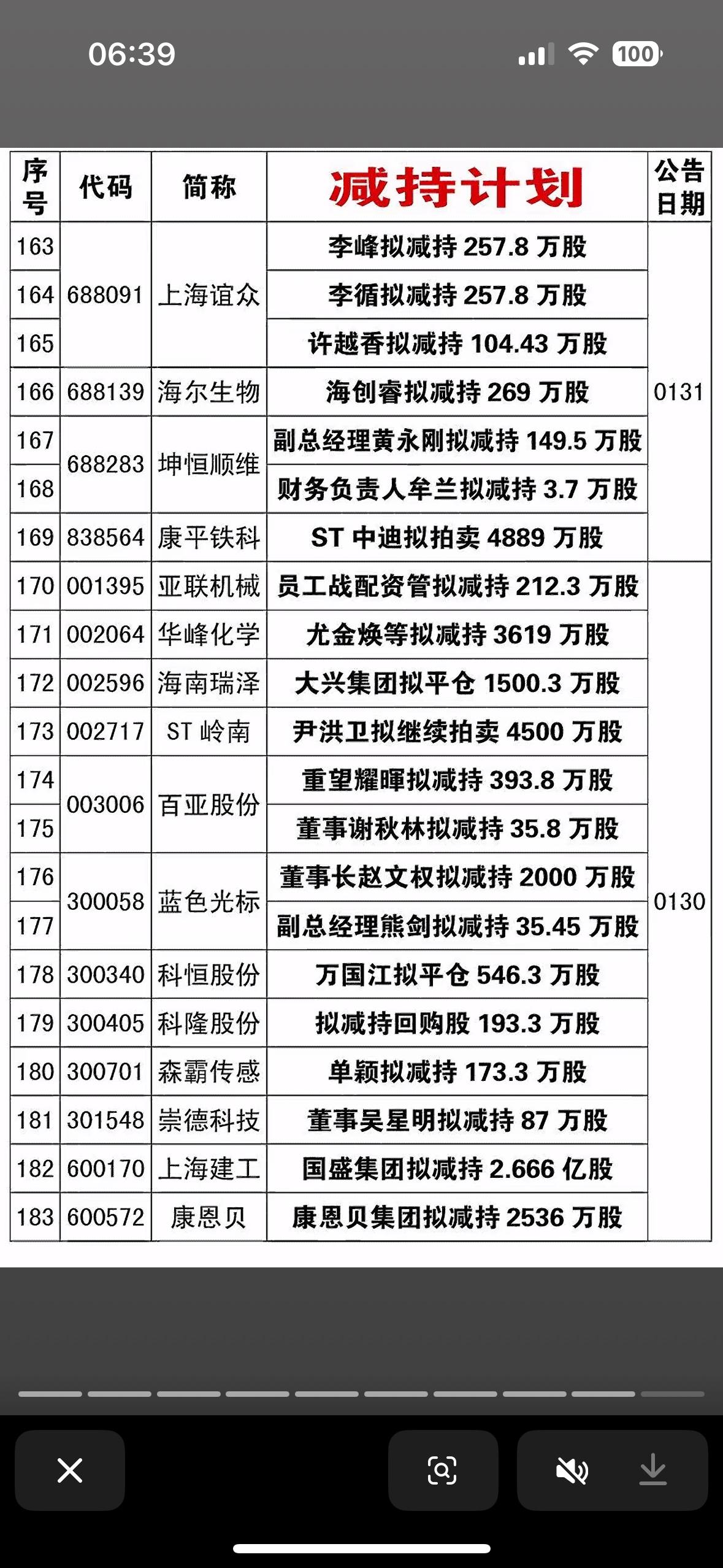 本周股票减持计划表,公司大动作。 多家上市公司股东密集减持,高管套现频现,市场压力信号明显。