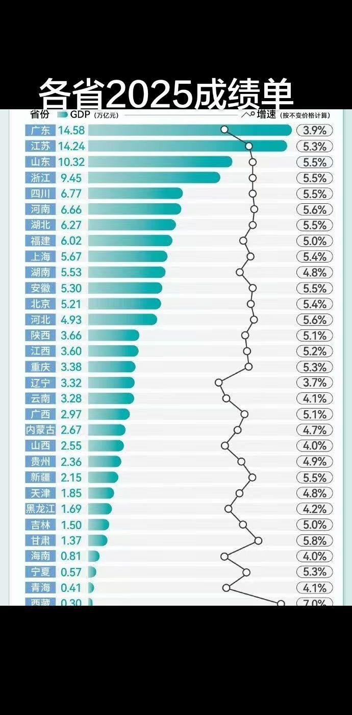 全国各省2025年GDP成绩单。你所在的省成绩怎么样?排名上升了还是下降了?