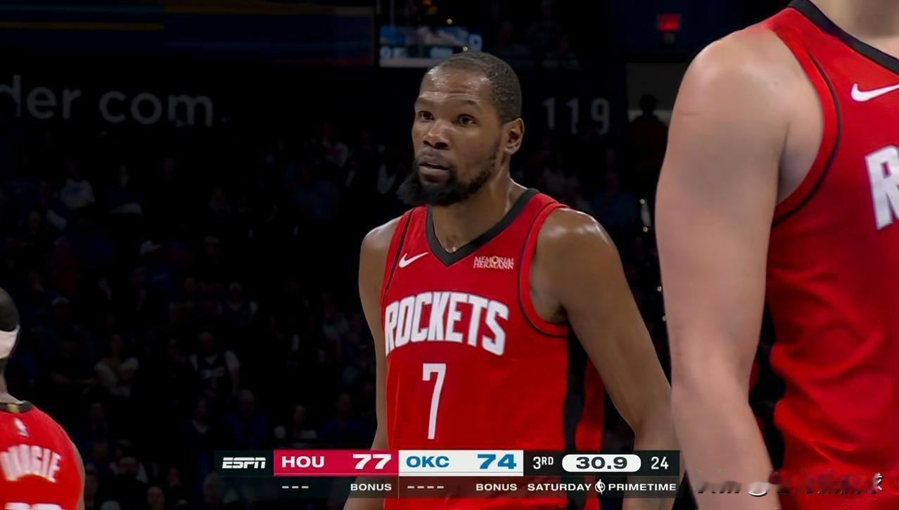 火箭当家球星杜兰特终于躺赢了一回!在今天火箭客场以112:106战胜雷霆的比赛中,杜兰特在频繁的遭遇对手的包夹下没有获得太多的出手机会,他在首发出战的40分钟里,投篮10中6,其中三分球5中2、罚球9中6得到20分1篮板4助攻1抢断1盖帽,他的场上正负值为+10。 虽然本场比赛杜兰特的出场时间多达40分钟,但是他在场上更多的是起到牵制防守的作用,因此此役杜兰特完全是躺赢了一回。