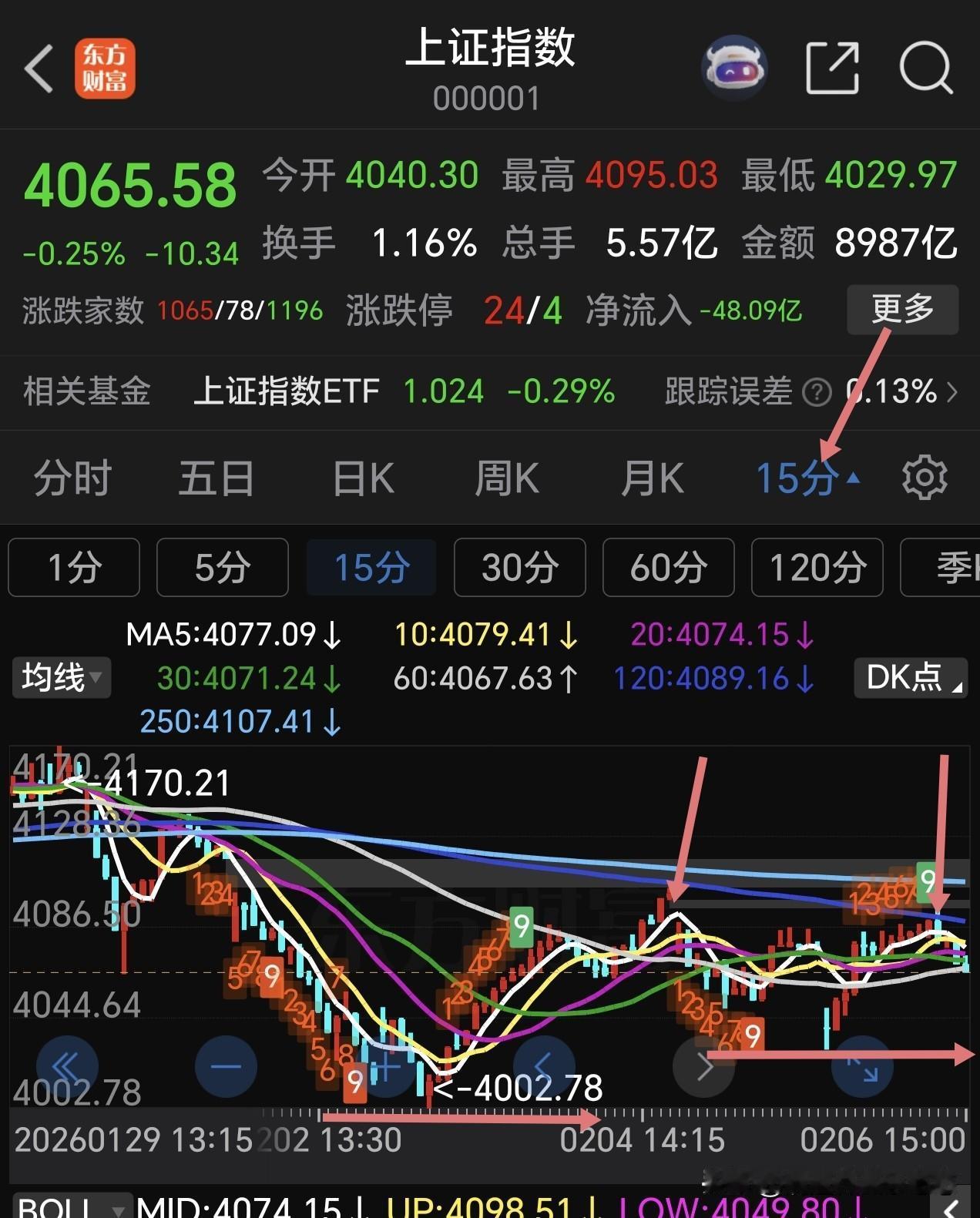 下周一大盘高开低走,上周震荡筑底还没有完成,大盘60F的KDJ指标现已死叉向下,预示下周初还会回落。15分钟走势连续两天上冲120线4100点附近都无功而返,说明这个位置压力比较大,不会因为外围大涨就会改变原来的趋势。下周一大概率还要考验周五低点4029点甚至更低,充分震荡蓄势后再度向上,所以做股票的或者做场内基金的,大幅高开是减仓机会,做场外的就比较被动了,只好忍受震荡整理。 节前一周: 仓位别满,现金留够; 赛道选对,弃前高守低位; 及时止盈别贪心;亏损不慌别割肉,定投加仓,别梭哈。 点赞转发评论关注,投资理财不迷路。