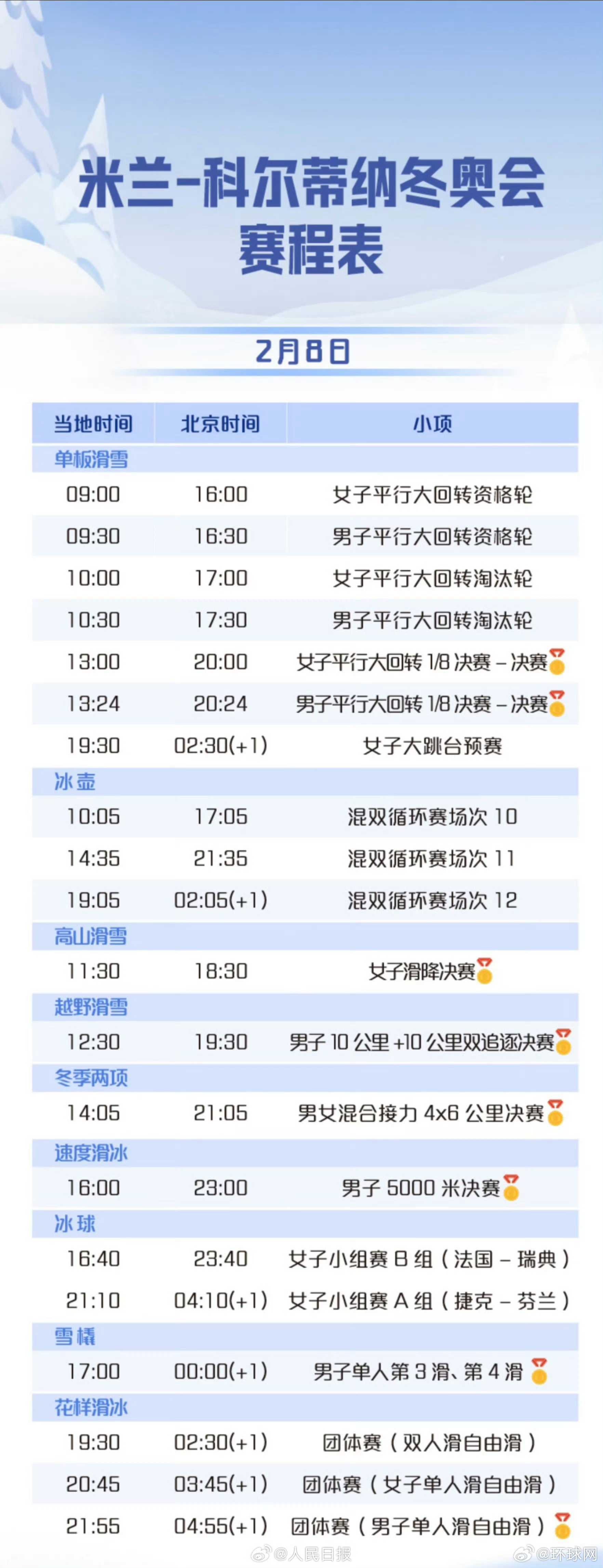【收藏!#米兰冬奥今日赛程速览#】#一人一句为冰雪健儿加油#北京时间2月8日,