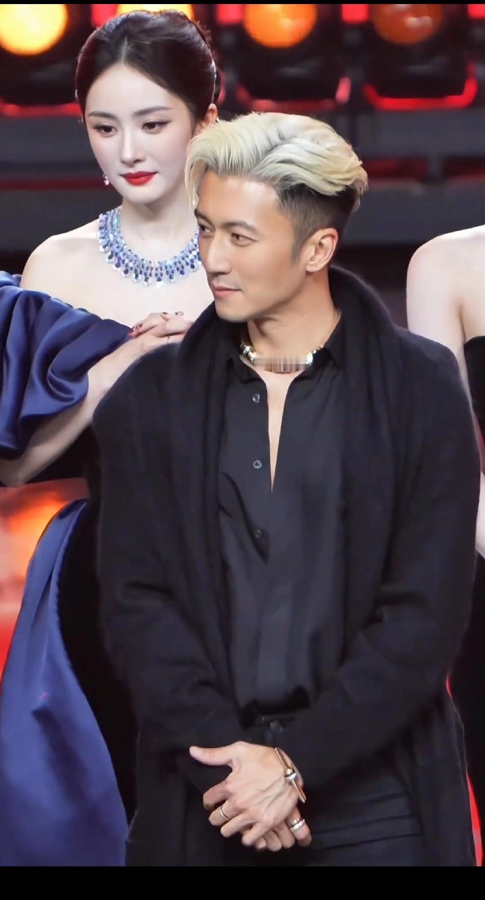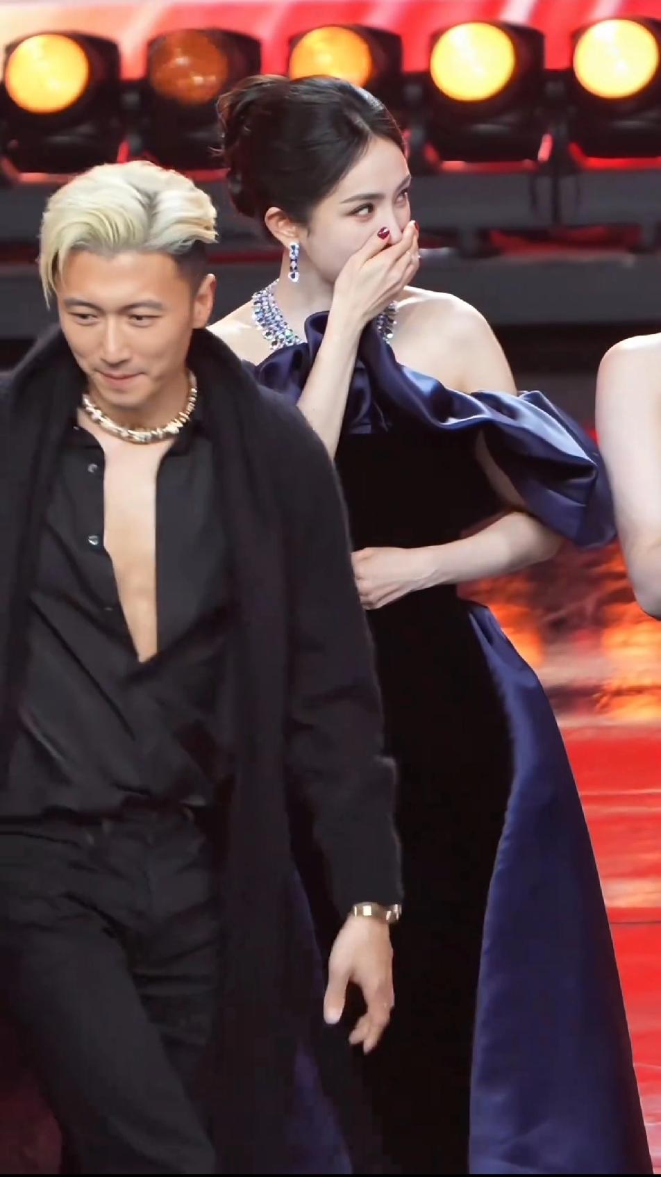 杨幂也就是在谢霆锋面前才会有这种小女生的羞涩姿态吧,她一直偷瞄站在身前的谢霆锋,还不停的捂嘴偷笑。不止一次了,只要一到谢霆锋跟前,杨幂就是这副羞涩少女姿态,总是会捂着嘴巴羞答答的,看得出她对谢霆锋是真爱!不过,谢霆锋也是硬帅,45岁的人了,还是看起来那么清清爽爽,一点也不油腻。杨幂