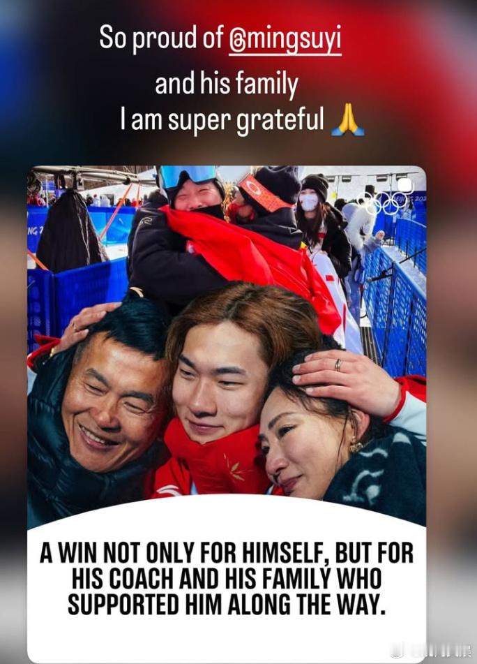 教练更新社媒晒照:为苏翊鸣和他的家人感到骄傲,我非常感激。