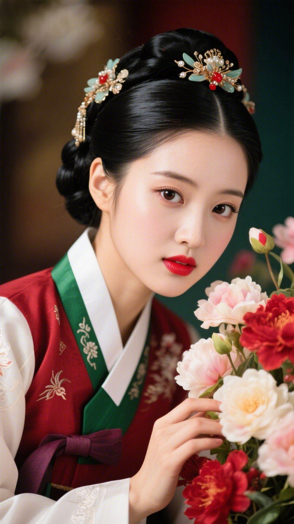 《绯襟花影里的雅意》 暖光裹着花束的柔时,她像浸在了季候的温软里。 绯红襟袖衬着舒展的肩,润而挺的面料里,藏着传统服饰的松弛感。云鬓挽作利落的髻,钗饰轻缀发间,未刻意堆砌的精巧里,浸着自然的雅致。素白衬里的柔裹着绣纹的韧,连指尖碰着的花簇,都似沾了点清浅的甜。 她立在花影间,神情舒展自然——这不是刻意雕琢的模样,是日常光景里的自在:不用拘谨姿态,不用斟酌神情,连衣料的垂感,都成了此刻闲适的注脚。 原来传统服饰的美从不是用力的庄重,是像这绯色的柔一样,雅得清浅,松得舒展。 传统服饰美学 日常松弛感