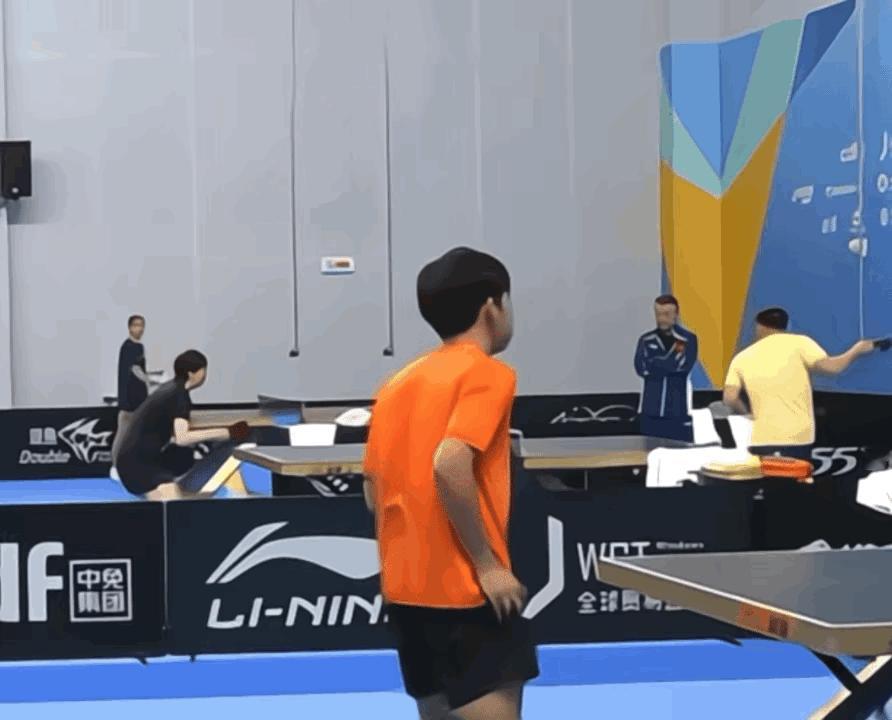 海口亚洲杯训练馆,任浩给王曼昱喂多球训练,看看任浩发球的速度,动作连贯性太强了,这就是年轻的好处,训练场上就能体现出来了。