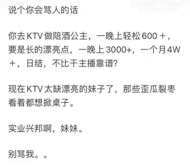 主播行业早已不复往日红利,多数从业者挣得不过三瓜两枣,连糊口都难,这也成了不少小姐姐不愿做主播的核心原因。行业里看似光鲜,实则赚钱的只是少数,普通主播不仅要熬时长、拼表现,还要面对直播间空白时段留人的难题,即便有几万粉丝,没有固定大哥支持也难有收益;更有不少直播公司经营惨淡,有人开公司三年赔几百万,行业变现的难度可见一斑。 同时这行还藏着诸多现实问题,赚快钱的执念让人难以回头,可极端大哥的存在又让从业者时刻面临安全隐患;看似有人傻钱多的榜一大哥,实则多是公会运营造势,并非真实流量;就连新晋的女大宿舍直播,背后也多有公会操盘,并非表面那般简单。而对比之下,足疗、商K等行业来钱更快,也让不少女生觉得直播的付出与回报完全不成正比,自然没了做主播的意愿。