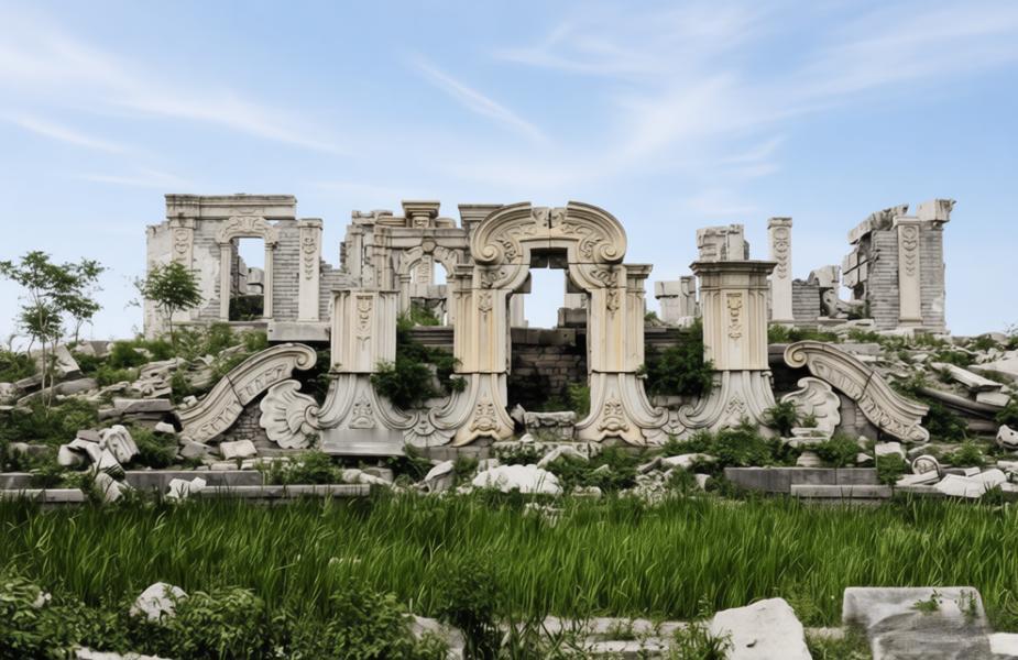 这是瑞典汉学家喜仁龙在1922年拍摄的圆明园西洋楼景区标志性建筑大水法的残迹。 大水法是乾隆年间由意大利传教士郎世宁等人设计的欧式喷泉景观,是西洋楼的核心建筑之一。建筑融合了巴洛克风格的雕刻与中式造园理念,曾以精巧的水力喷泉系统闻名,是乾隆帝观赏水景、宴请外使的场所。
