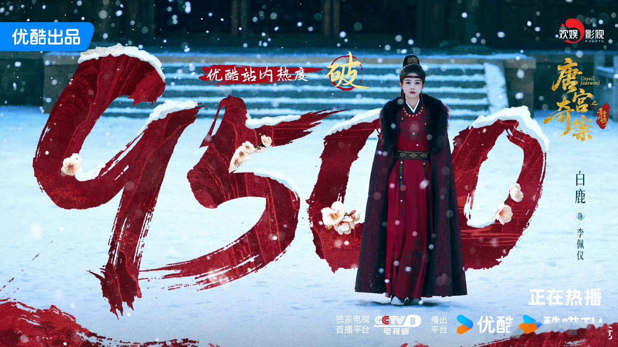 恭喜白鹿唐宫奇案优酷热度破9500央视八套同步播出实时收视率破1.3%,云合数据次日占比飙升至10.8%,单日播放量翻3.2倍
