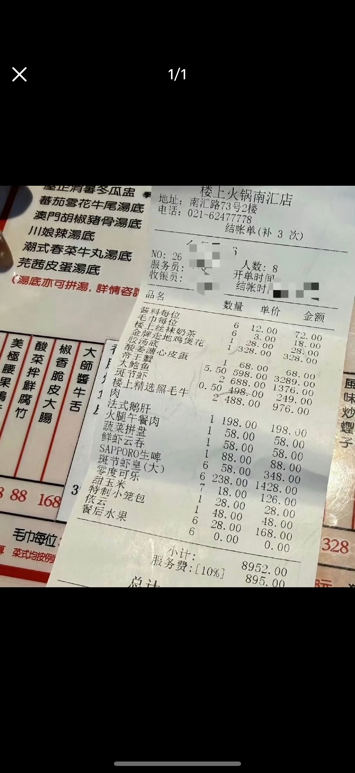 EXO上海吃火锅账单EXO上海吃火锅消费近一万哥哥们好有米!谁家吃顿火锅干一万块