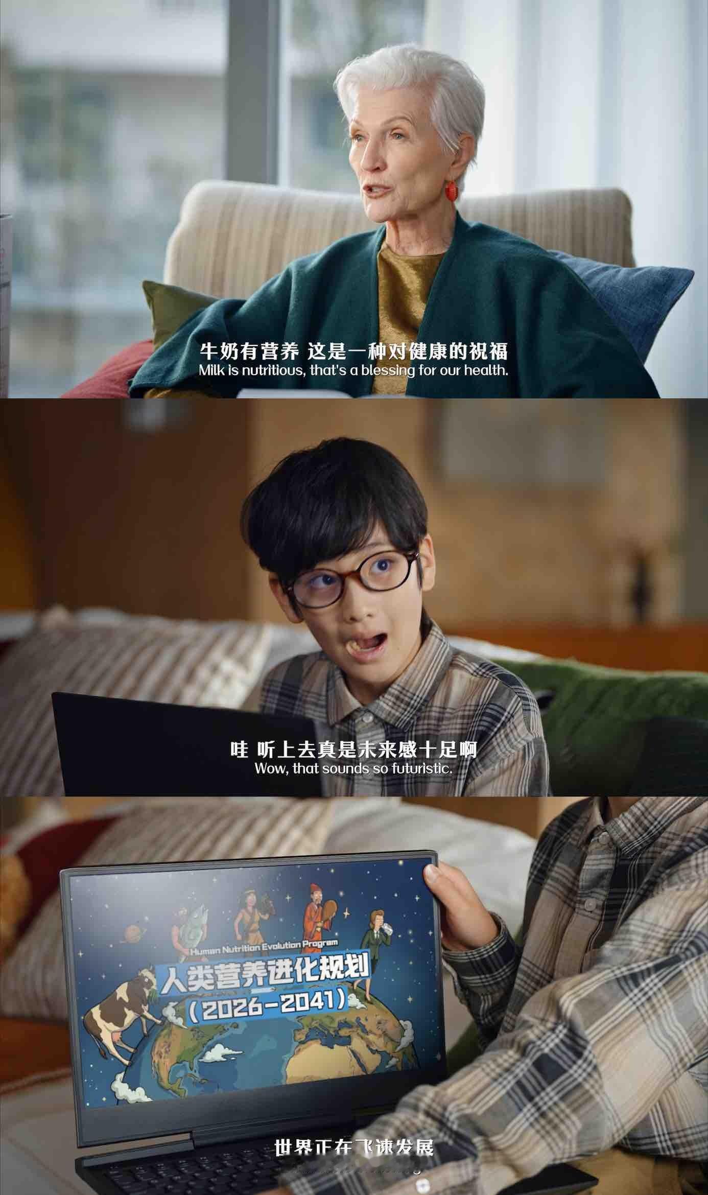 马斯克妈妈的营养课堂开讲了77岁梅耶撞上小孩哥,跨龄唠嗑把春节送牛奶聊透了!从营养进化讲到健康浪漫,硬核科普超有梗,小朋友听得眼睛发亮~这送礼灵感直接抄作业梅耶科普牛奶冷知识