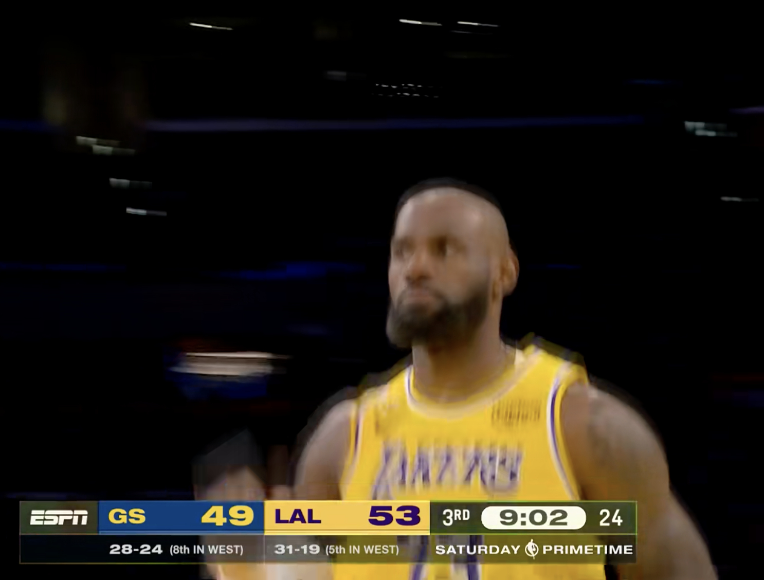 不好意思,詹姆斯第三节12分了!勇士vs湖人