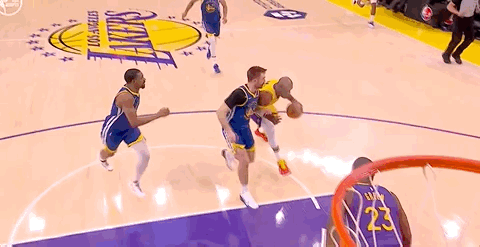詹姆斯又一个2+1,第三节猛了!!! 勇士暂停!湖人52-44领先!勇士vs湖人