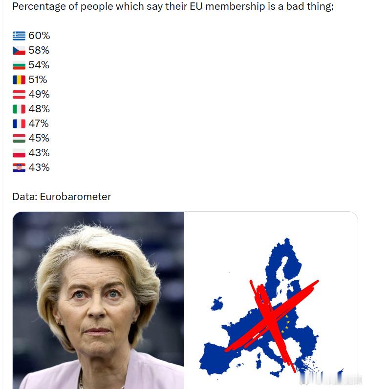 希腊 60%捷克 58%保加利亚 54%罗马尼亚 51%奥地利 49%意大利 48%法国 47%匈牙利 45%波兰 43%克罗地亚 43%