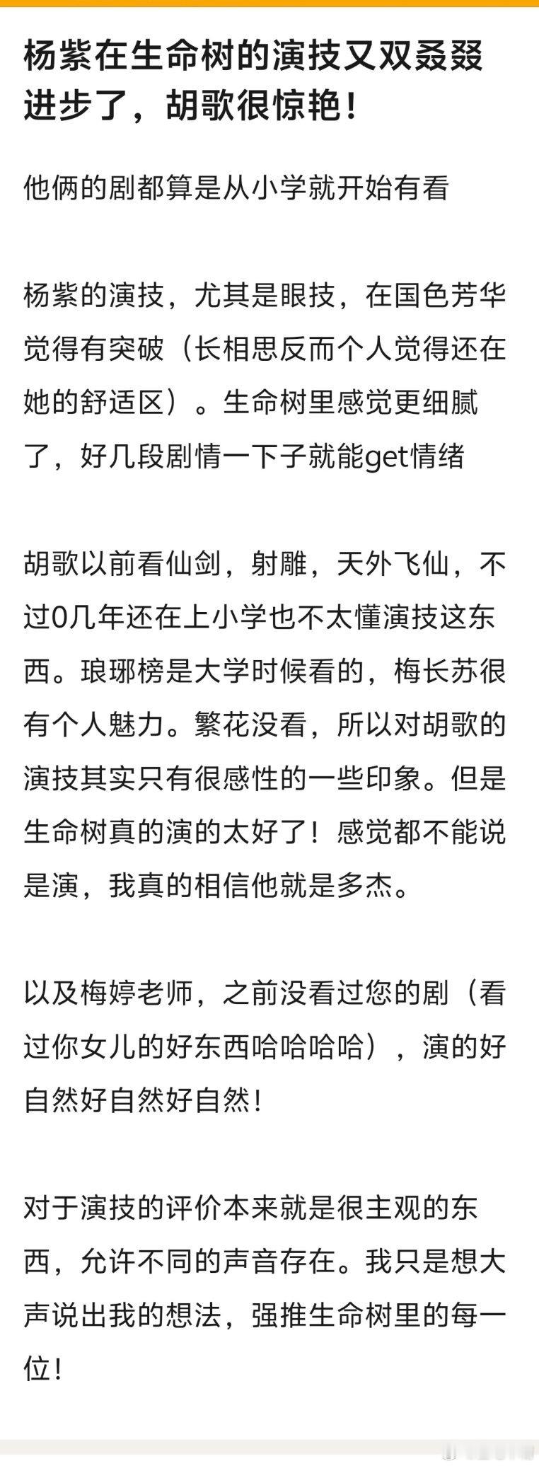 生命树搬运:杨紫在《生命树》的演技又双叒叕进步了,胡歌很惊艳!