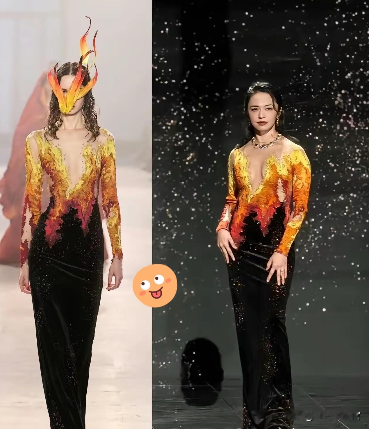 谁懂啊!姚晨这身焰火裙一出场,直接把全场目光焊在身上了🔥 深V鎏金设计像把漫天