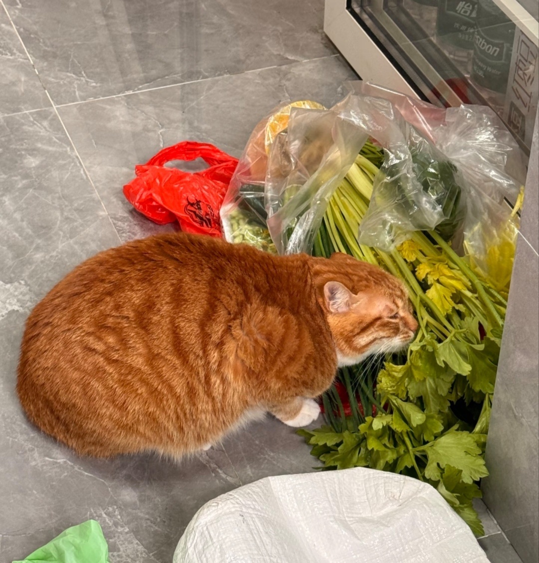猫猫超级喜欢闻芹菜,相当痴迷啊