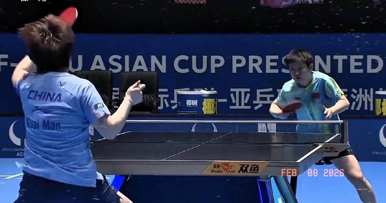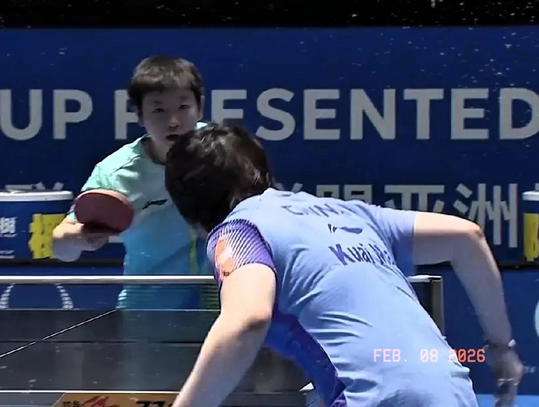 孙颖莎有惊无险赢下制胜局。 开局6-1领先,被蒯曼连追5分6-6,10-7拿到赛末点,蒯曼挽救2个赛点,孙颖莎还是以11-9胜出。 2026乒乓球亚洲杯首场女单半决赛,孙颖莎以大比分4-2战胜队友蒯曼,晋级决赛。