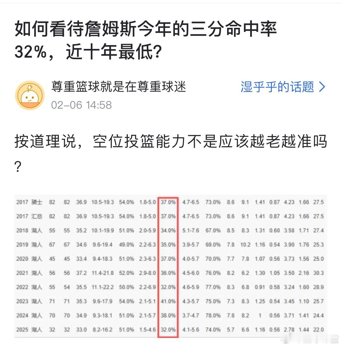 球迷讨论:如何看待詹姆斯今年的三分命中率32%,近十年最低?