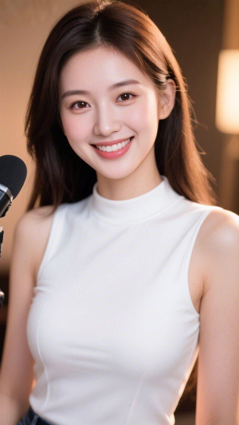 白衫伴暖光闲意 暖光裹着柔意漫开时,她立在室内的轻缓里,像浸了软雾的白,净得清透。 无袖衫衬着舒展的肩,软而贴的面料里,藏着穿搭的自在感。长发松松垂落,未刻意打理的发梢里,浸着自然的柔和。衣料轻覆身形的妥帖中,没有局促的紧绷,连笑意里的暖意,都染着场间的松弛。 她的笑弯着眼尾,不用拘着姿态,不用斟酌神情——这才是日常里最动人的舒展。原来素色穿搭的美从不是用力的装点,是像这白衫的柔一样,淡得清透,松得自在。 素色轻雅穿搭 日常松弛感