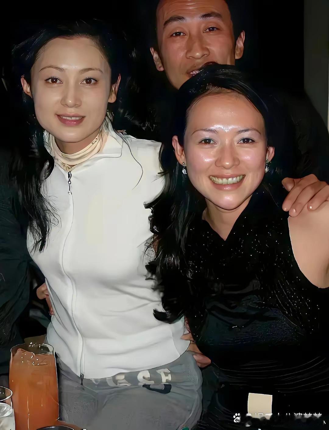 年轻时候的章子怡和张艺谋、李连杰的合影,据说当时章子怡差点把老谋子拿下了。那时