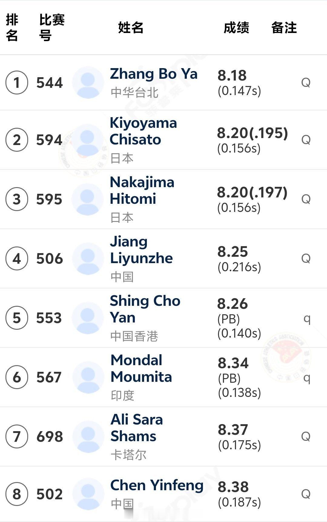 2026亚洲室内田径锦标赛 女子60米栏预赛总成绩,张博雅领衔,姜李韵喆、陈银凤晋级。田径说一哈你不知道的田径故事