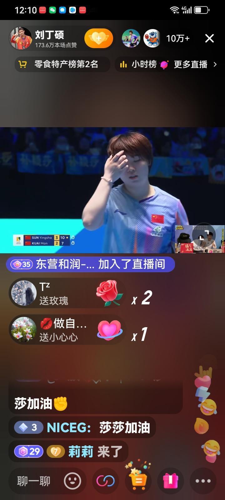 亚洲杯女单半决赛,国乒内战蒯曼一孙颖莎,蒯曼2一4不敌师姐,莎莎晋级决赛[赞][赞] 11一8,7一11,11一6,7一11,4一11,9一11。 蒯曼能从莎姐手里拿两局已经是很大的进步了,能和莎莎打高水平的半决赛,是蒯曼平时训练都得不到的收获和成长,能走到莎姐面前就是成功。 蒯曼好好休息,莎莎继续努力加油争冠军。[赞][赞][赞] 刘丁硕直播间莎莎的比赛10万人在线观看,换其他人的比赛不到一万人这就是差距,是很多人不服却是无法改变的事实,莎莎的实力经得起任何质疑声[赞][赞][赞]