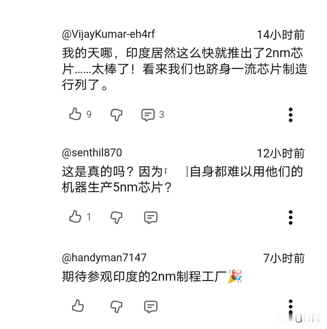 取得突破!印网友:印度已经成为半导体强国。 2月7日,据数家印媒报道,印度已经设计出两纳米芯片。印媒在报道中表示,之所以能取得突破,凭借的是人才与芯片的设计优势,未来这种优势有望进一步扩大。同时,为量产两纳米芯片做好技术准备。 闻讯后的印网友自然是高兴,并期待2纳米芯片能够尽快量产。还有的则认为,印度在半导体领域已经追上了世界先进水平,成为了芯片强国。 按照计划,印度将在2035年量产2纳米芯片,虽然其已经初步具备了生产28纳米芯片能力,可距离2纳米制程还有非常大的差距。那么,十年内能成功吗?