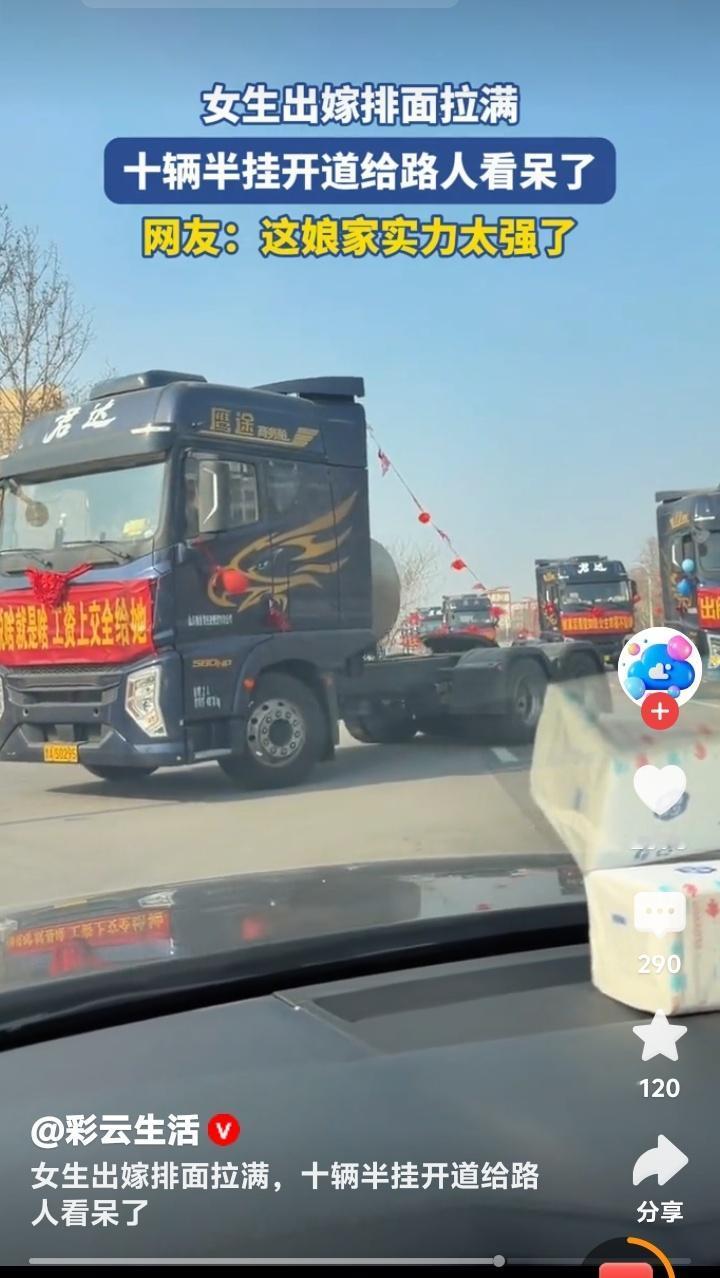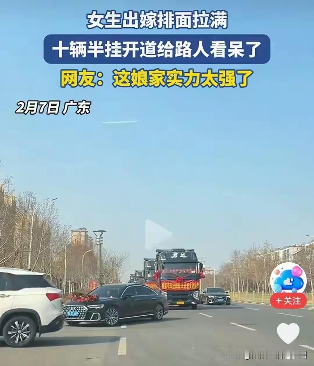 贵州街头惊现“钢铁巨龙”迎亲队!十辆半挂车挂红绸鸣笛穿城,新娘笑称:这是我家最硬的“嫁妆”与最软的浪漫 当清晨的阳光洒在贵州某县的街道上,一阵低沉而雄浑的汽笛声划破了宁静。不是火车经过,也不是工地开工,而是一支由十辆重型半挂卡车组成的迎亲车队,正披红挂彩,浩浩荡荡地驶过城区。车头硕大的“囍”字在阳光下反着光,车身悬挂的红色绸带随风飘扬,宛如一条威武的“钢铁巨龙”在巡游。路人纷纷驻足,举起手机,惊叹声此起彼伏:“我的天,这是把货运车队变成婚车队了?”“这排面,太硬核了!” 这并非什么商业炒作或土豪炫富,背后是一个温暖又接地气的家庭故事。新娘小琳,从小在父亲的半挂车驾驶室里长大,车轮碾过的公里数,记录着她童年的颠簸与父亲的辛劳。新郎一家同样深耕运输行业。当讨论婚礼时,两家不约而同地摒弃了租借豪华车队的常规思路。他们决定,就用这些陪伴家人风雨兼程、撑起整个家业的“老伙计”,来见证最重要的时刻。十辆车,寓意十全十美;车是亲友们主动开来的,情谊无价;油钱自己加,祝福免费送。这份“排面”,沉甸甸的全是生活的分量与人情的温度。 在充斥着天价彩礼、奢华布置的婚庆风气中,这样一支特别的迎亲车队,像一股带着机油味和烟火气的清流,冲刷着人们的认知。它没有劳斯莱斯的幻影,也没有保时捷的轰鸣,但它有半挂车坚实的底盘和澎湃的动力,仿佛在宣告:婚姻的幸福,不需要浮华的堆砌,更需要的是像卡车一样,能负重、能远行、能经得起一路风雨的踏实与可靠。那些平日里与货物、里程、时效打交道的艰辛,此刻都化为了对新人未来之路“稳稳当当”的具象祝福。 网络上,视频迅速引爆热议。有人调侃:“这安全感,是直接给女婿上了十道保险啊!”“以后吵架,想想娘家这车队,脾气都得收三分。”有人感动:“把谋生的工具变成祝福的仪仗,这是平凡劳动者最浪漫的创意。”“红绸配钢铁,粗犷里藏着极致的温柔,这是独属于我们普通人的盛大仪式。”当然,也有不同的声音,担心车队影响交通。但据了解,新人家庭事先已与相关部门沟通,选择了合适路线与时间,在喜庆的同时也尽力遵守秩序。 这支车队之所以动人,正是因为它跳出了“婚礼必须如何”的框架,用最贴近自己生命轨迹的方式,完成了爱的表达。它不迎合世俗的“高级”标准,却定义了一种更厚重、更真诚的“高级”——那就是忠于自己的生活,珍视自己的来路,并把这份独特的经历,变成携手未来的起点。半挂车的鸣笛,不是噪音,是向世界宣告幸福的号角;钢铁的车身,不是冰冷,是家庭为爱筑起的坚固堡垒。 它让我们看到,仪式感的真谛,不在于花了多少钱,而在于用了多少心。当无数婚礼在比拼酒店星级和车队品牌时,这对新人用十辆半挂车告诉我们:真正的浪漫,可以很“重”。这份重量,是家庭的支撑,是职业的尊严,是同行互助的义气,更是对未来生活“扛得起、走得稳”的朴素信心。这份源自生活本身的创意与真情,比任何精心设计的剧本都更有力量。 所以,当这条“钢铁巨龙”缓缓驶过街头,它承载的远不止一位新娘。它承载着两个家庭对过往奋斗的致敬,对彼此结合的珍重,以及对平凡日子红火向前的期盼。它或许不“仙”,但却无比“鲜”,鲜活地展现了中国人婚姻观念中,那份关于“家业”、“踏实”与“同路人”的深刻联结。祝福这对新人,如同他们身后的车队,在人生的长路上,始终同轨同心,满载幸福,平稳前行。 (来源:根据网络热点事件及多家自媒体报道综合撰写) 硬核浪漫 平凡之光