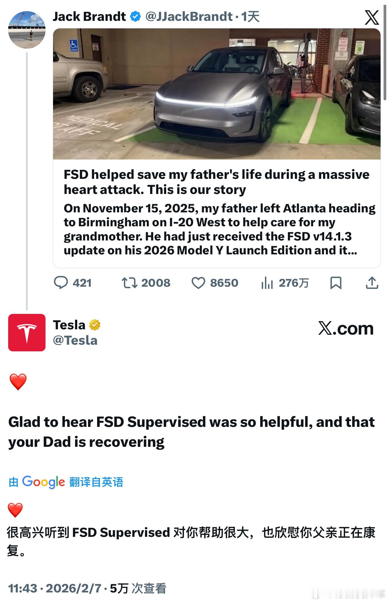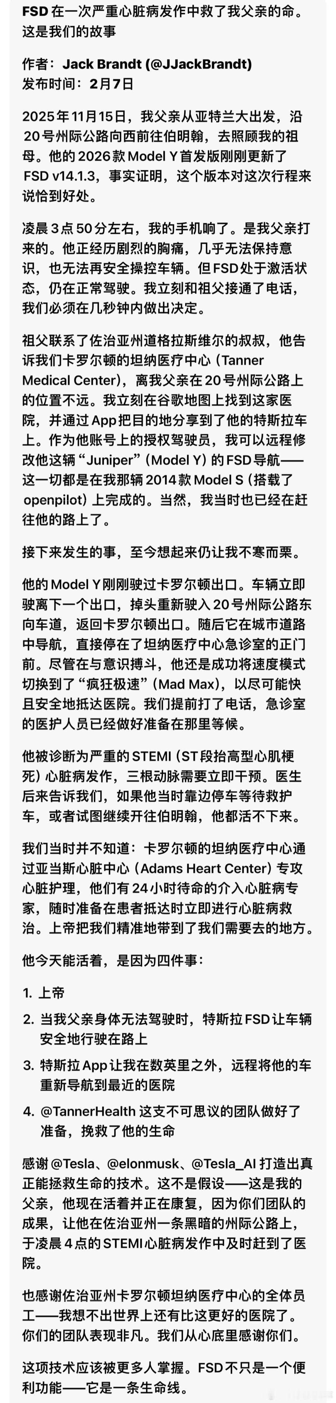 FSD紧急救援心脏病人的案例,本来还在想这事是不是真实的?后来特斯拉官方也在下面评论,从事件过程来说有点Amazing,从技术角度来看这也不太奇怪。特斯拉