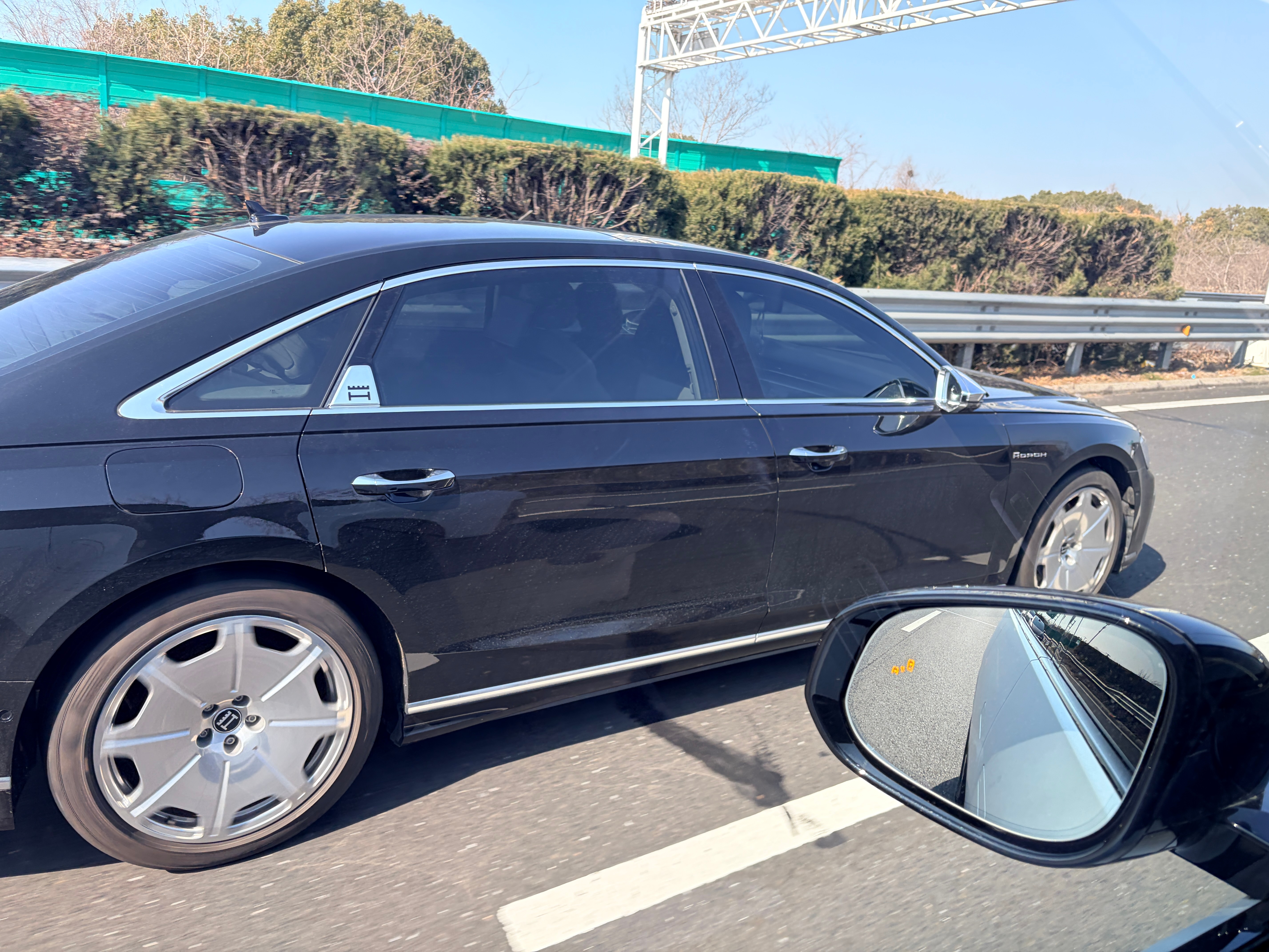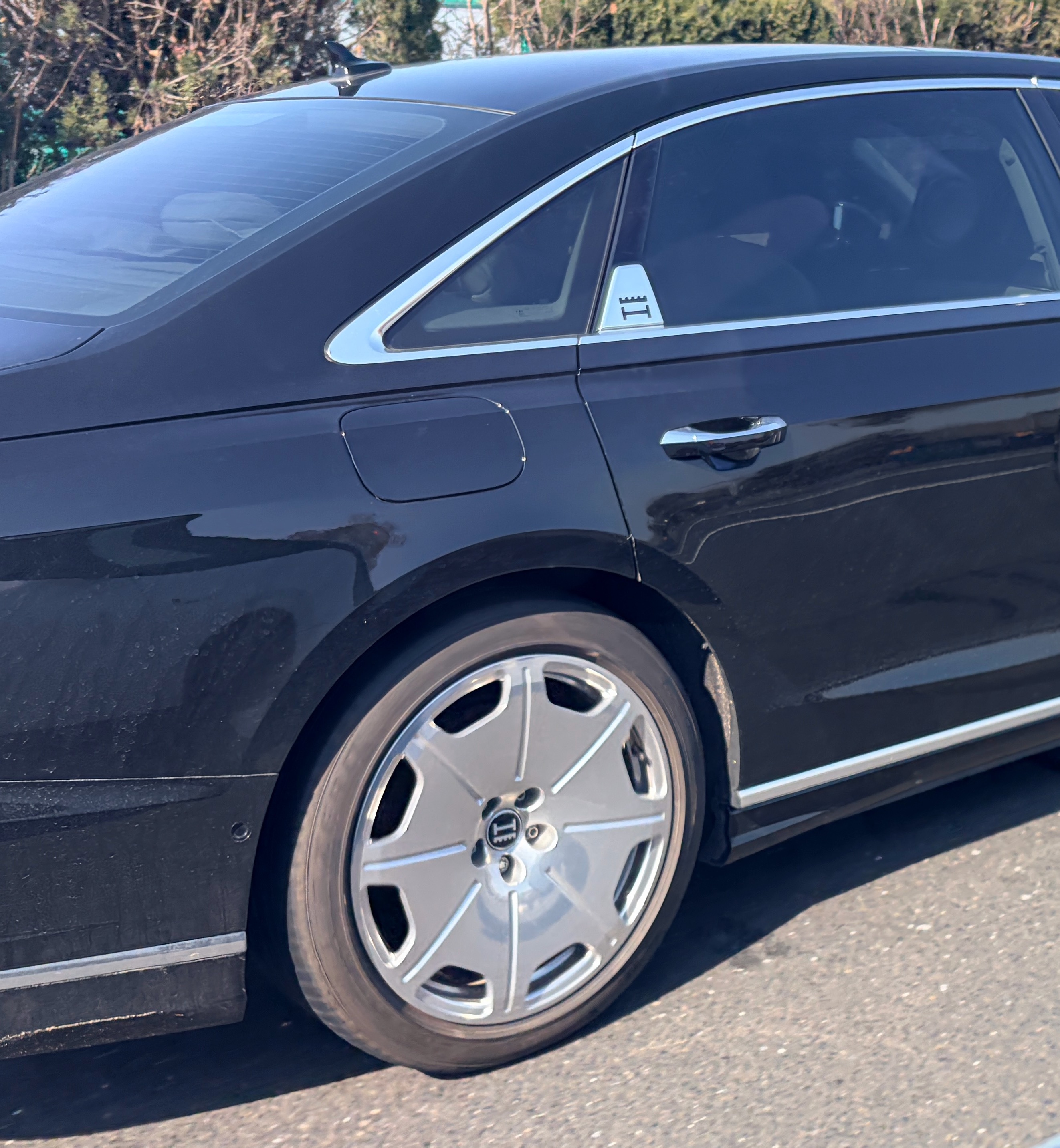 路上看到了一辆A8 霍希版,喜欢大饼轮的扣1,不喜欢大饼轮的扣2。