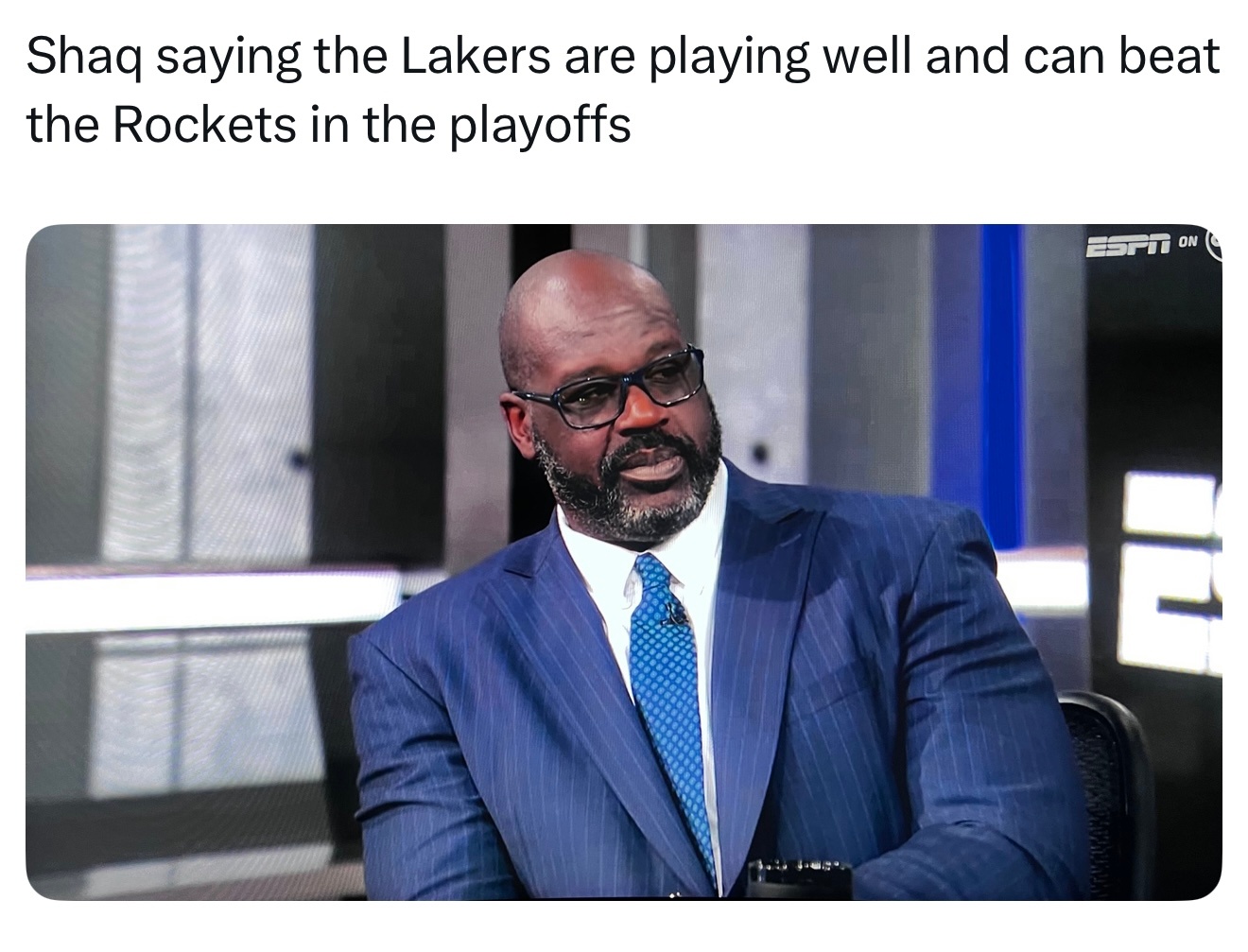 奥尼尔表示,湖人能在季后赛击败火箭。
